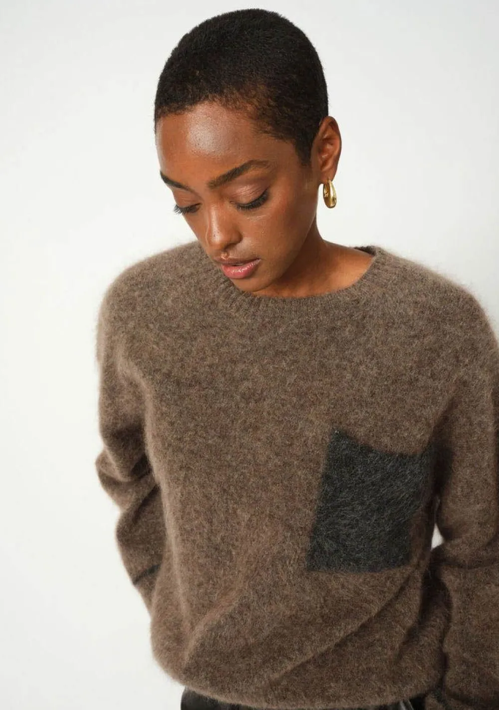 – Het model is 1.76m lang en draagt maat S