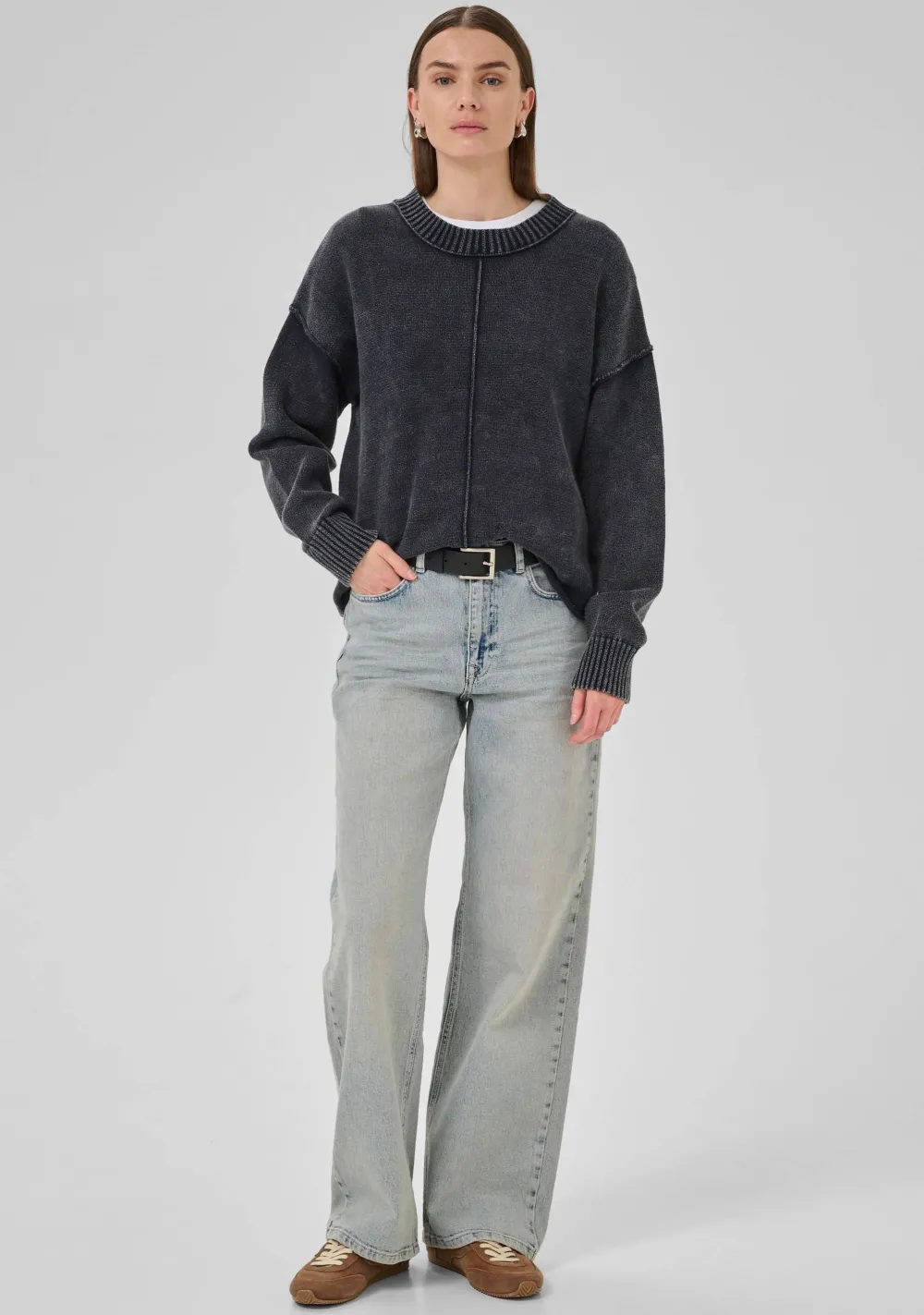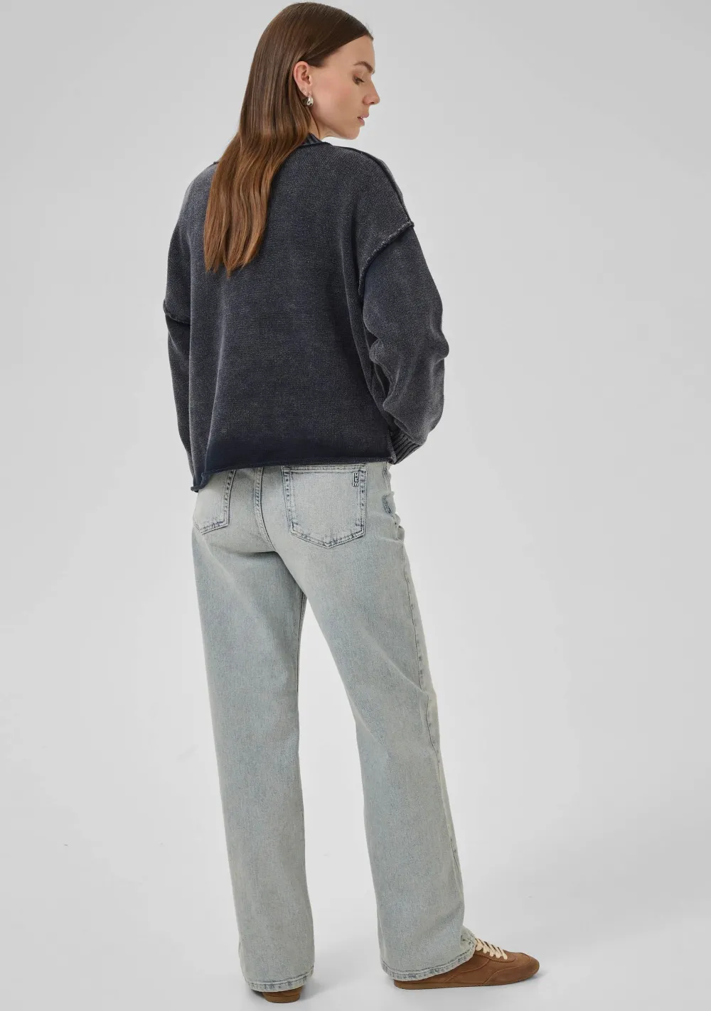 – Het model is 1.76m lang en draagt maat S