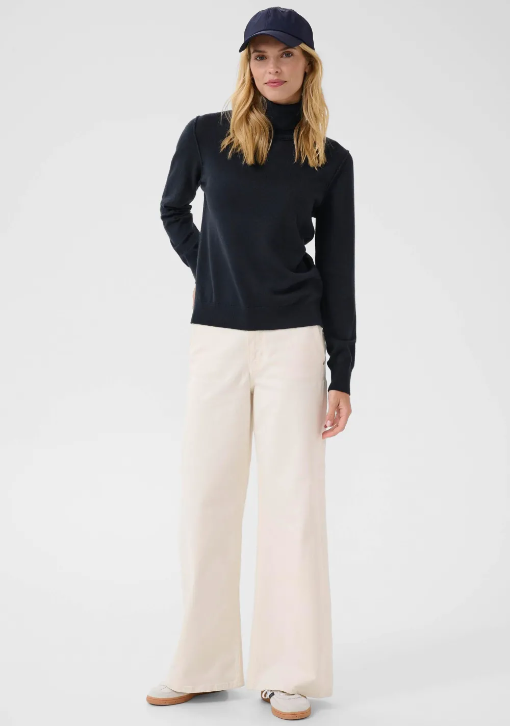 – Het model is 1.76m lang en draagt maat S