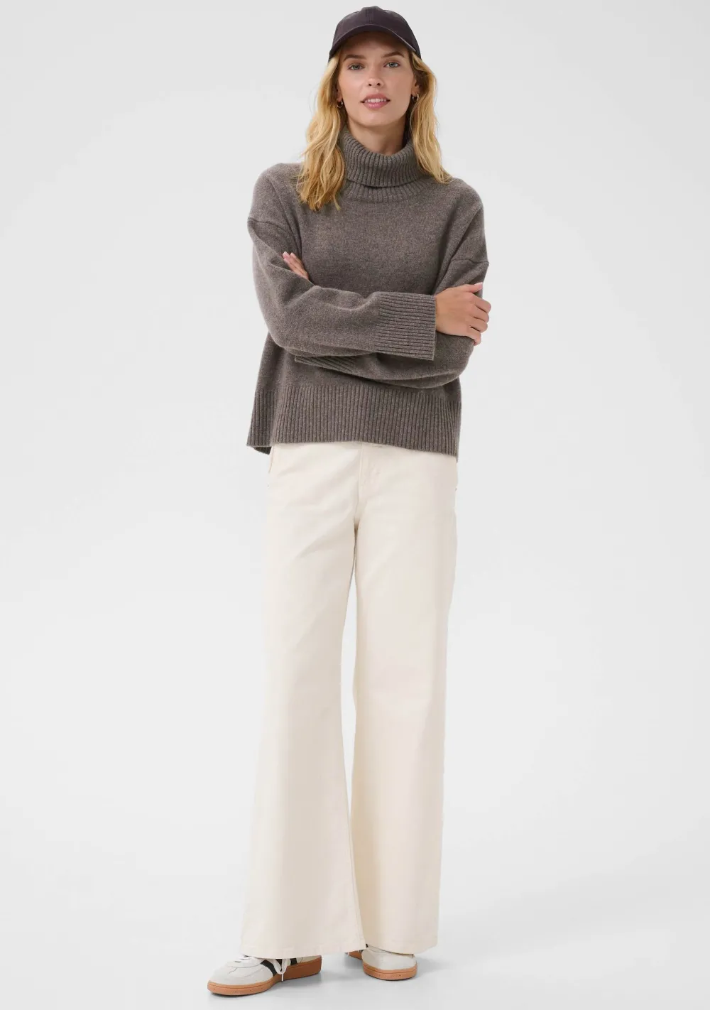 – Het model is 1.76m lang en draagt maat S
