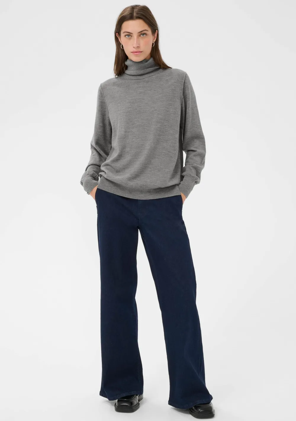 – Het model is 1.76m lang en draagt maat S