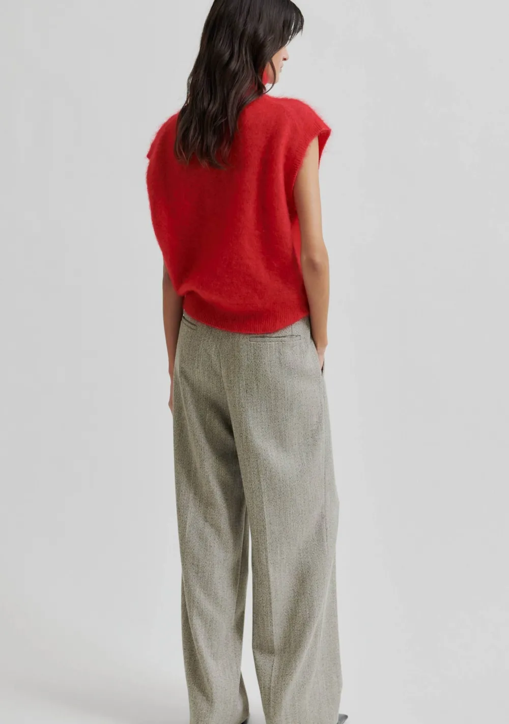 – Het model is 1.76m lang en draagt maat XS