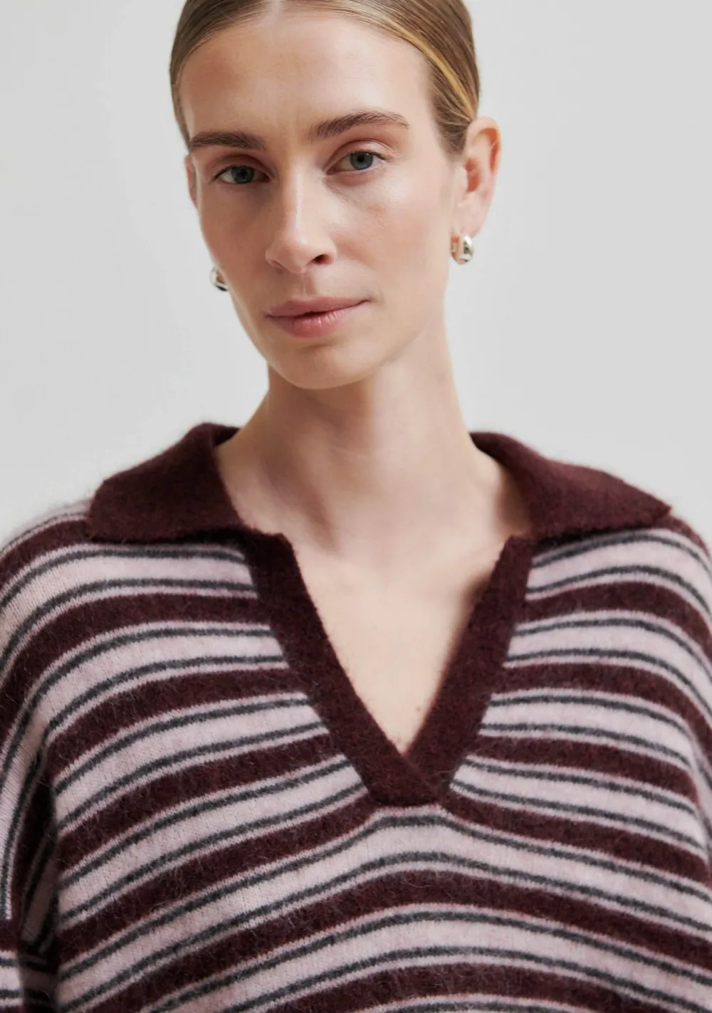 – Het model is 1.76m lang en draagt maat XS