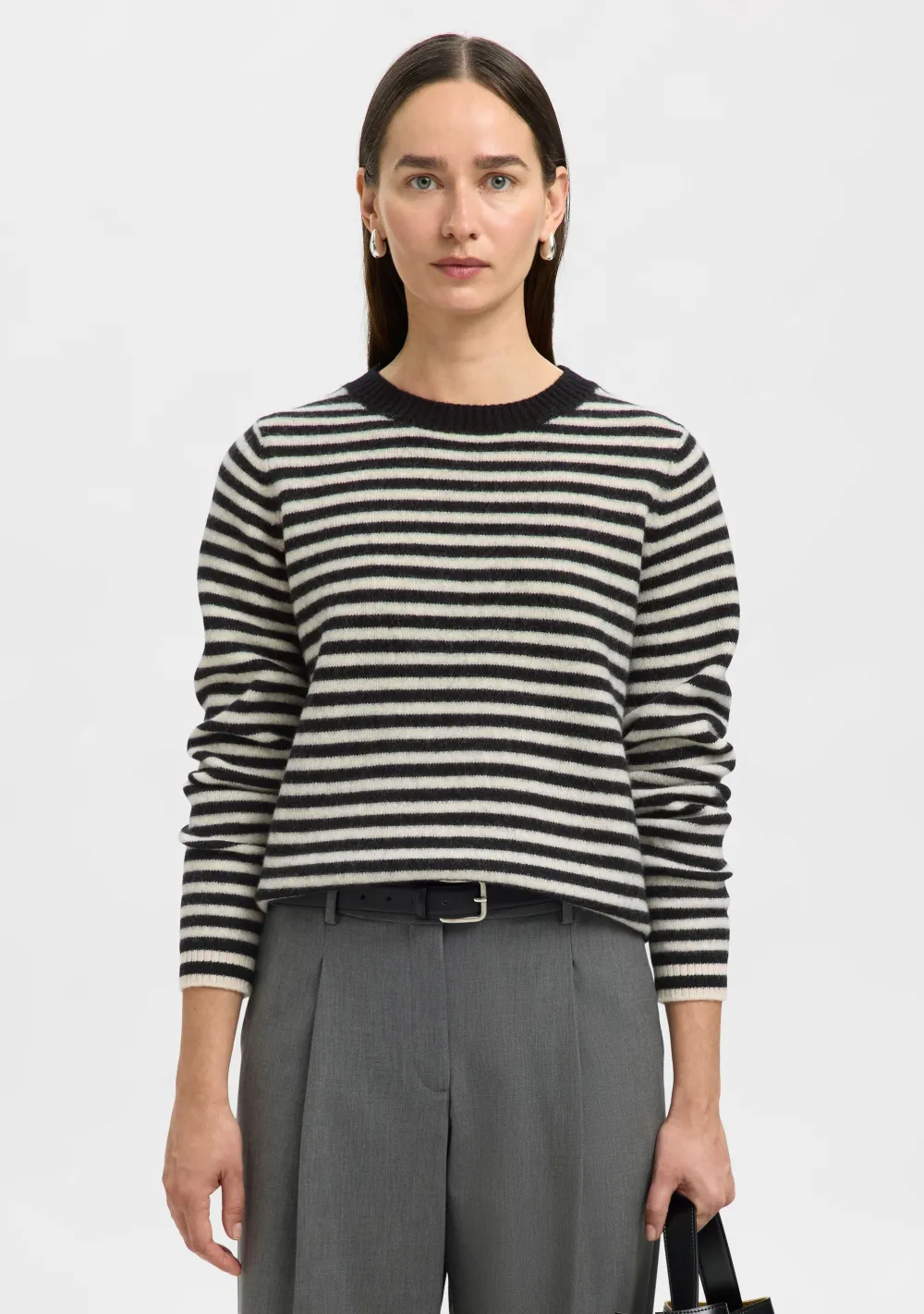 – Het model is 1.76m lang en draagt maat S