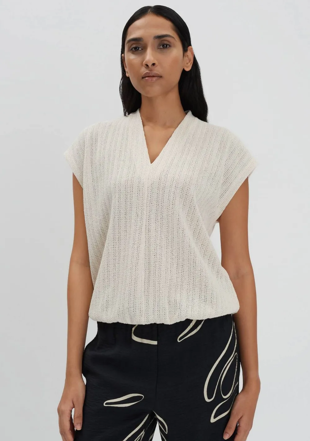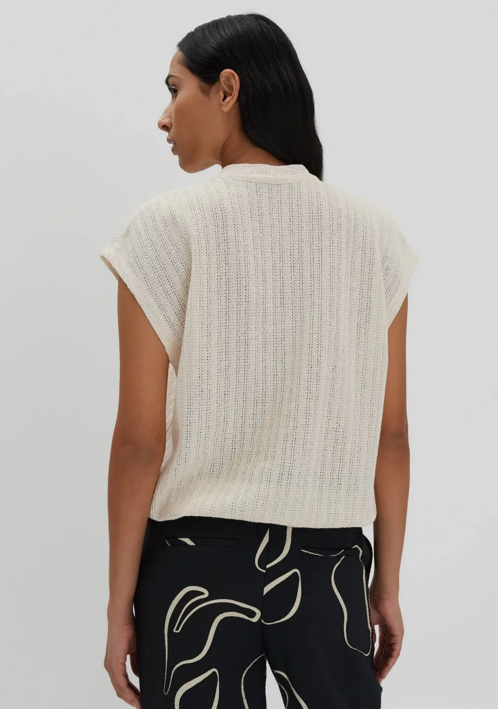 – Het model is 1.76m lang en draagt maat 36