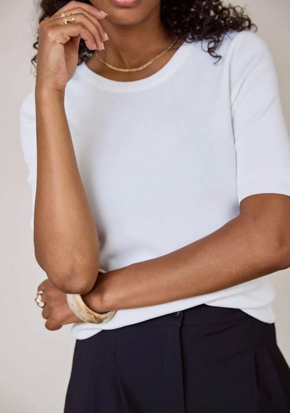 Met een lengte van 60 cm vanaf de schouder is dit topje de ideale lengte voor een veelzijdige look. Of je het nu in je broek stopt of er lekker nonchalant overheen draagt, de lengte zorgt voor een elegante uitstraling. Het model is 1.76 meter lang en draagt maat S, zodat je kunt zien hoe dit topje past.