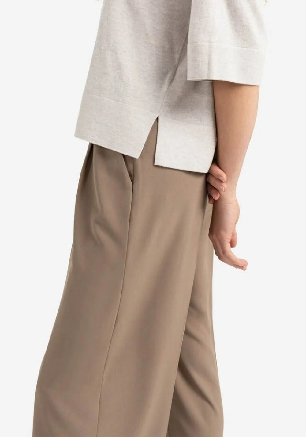 – Het model is 1.76m lang en draagt maat S