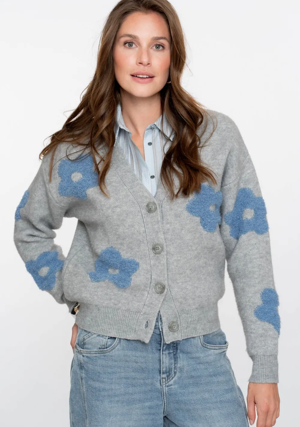 – Het model is 1.76m lang en draagt maat S