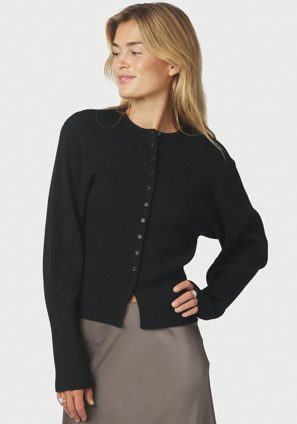 – Het model is 1.76m lang en draagt maat 36