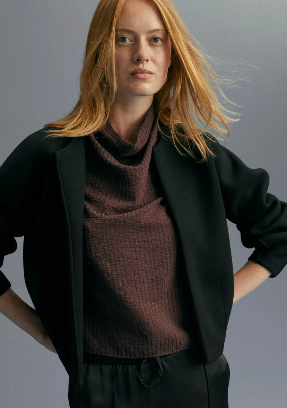 – Het model is 1.76m lang en draagt maat S