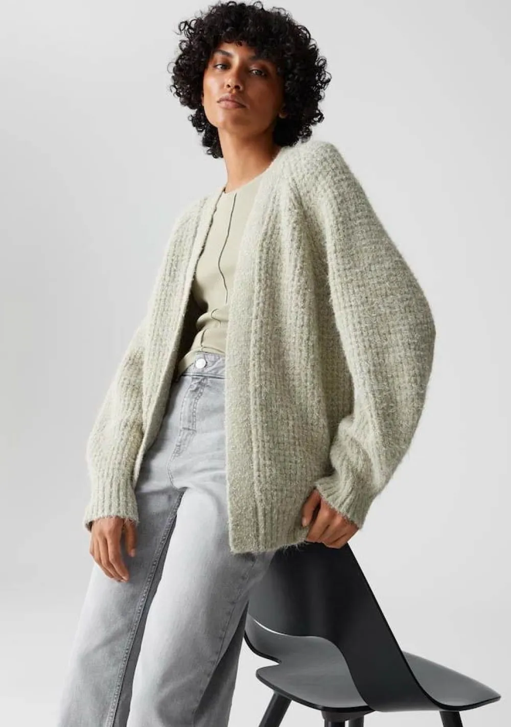 – Het model is 1.79m lang en draagt maat 36