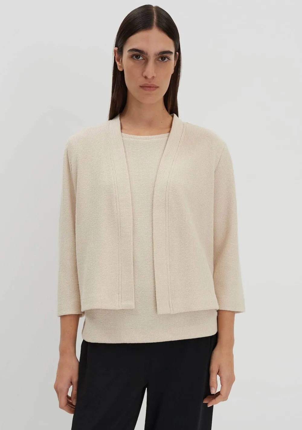 – Het model is 1.76m lang en draagt maat 36