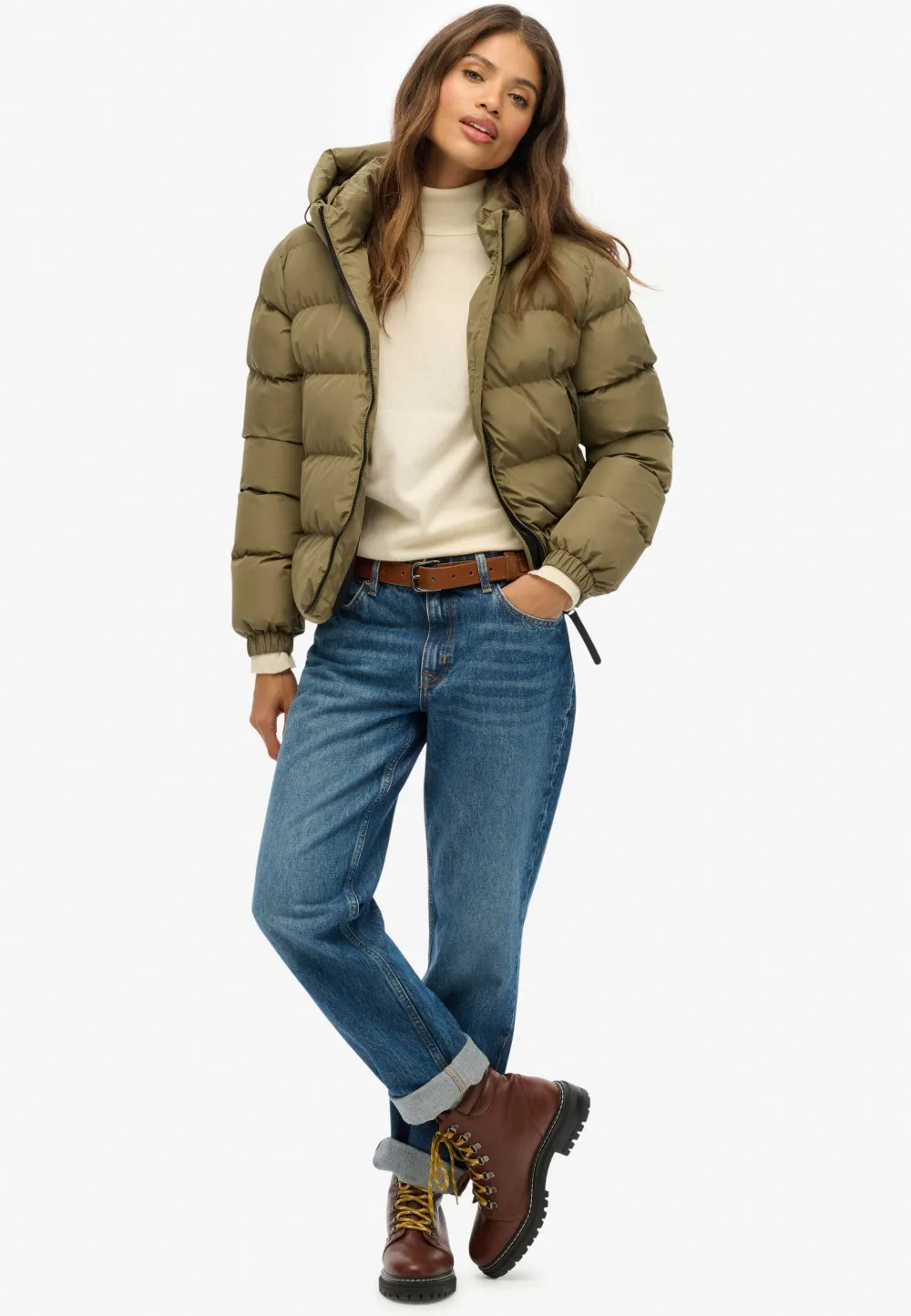 – Het model is 1.75m lang en draagt maat 36