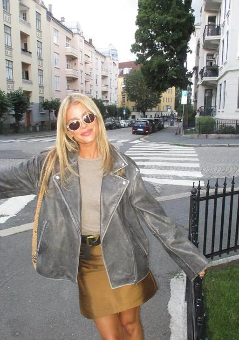 – Het model is 1.76m lang en draagt maat S