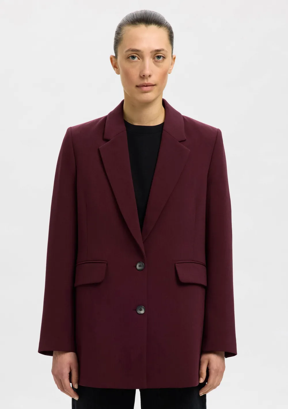 – Het model is 1.76m lang en draagt maat 36