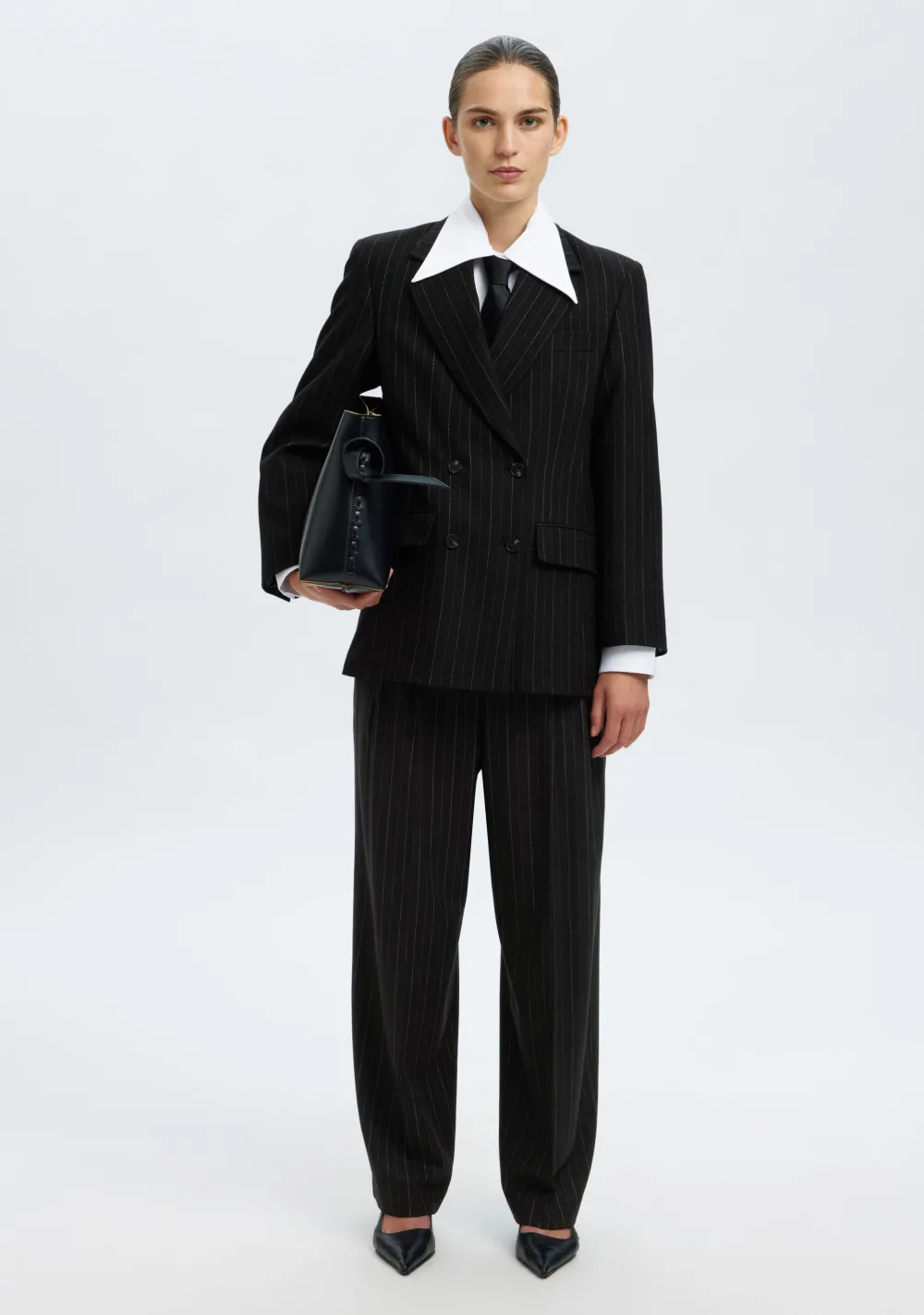 – Het model is 1.76m lang en draagt maat 36