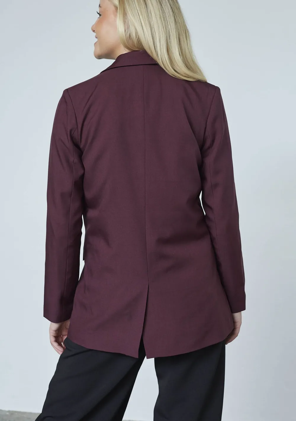 – Het model is 1.76m lang en draagt maat XS