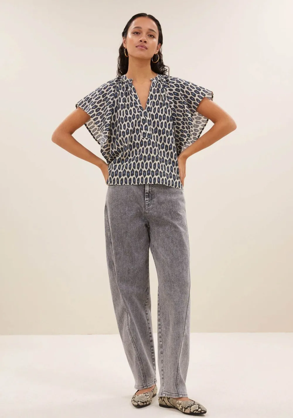 – Het model is 1.75m lang en draagt maat S