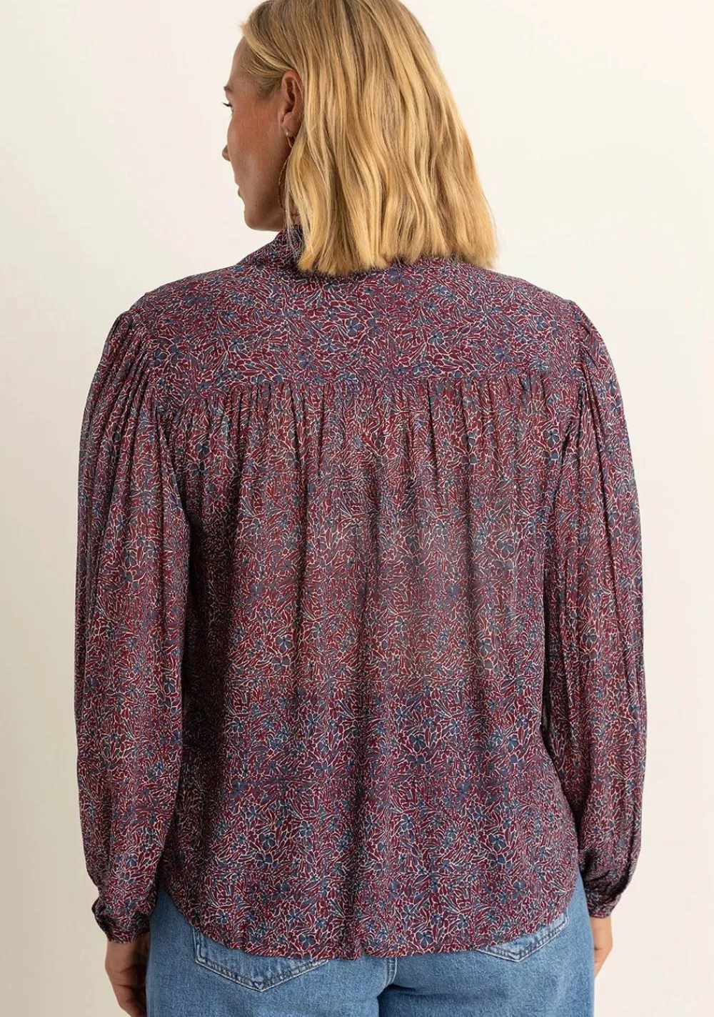– Het model is 1.76m lang en draagt maat 36