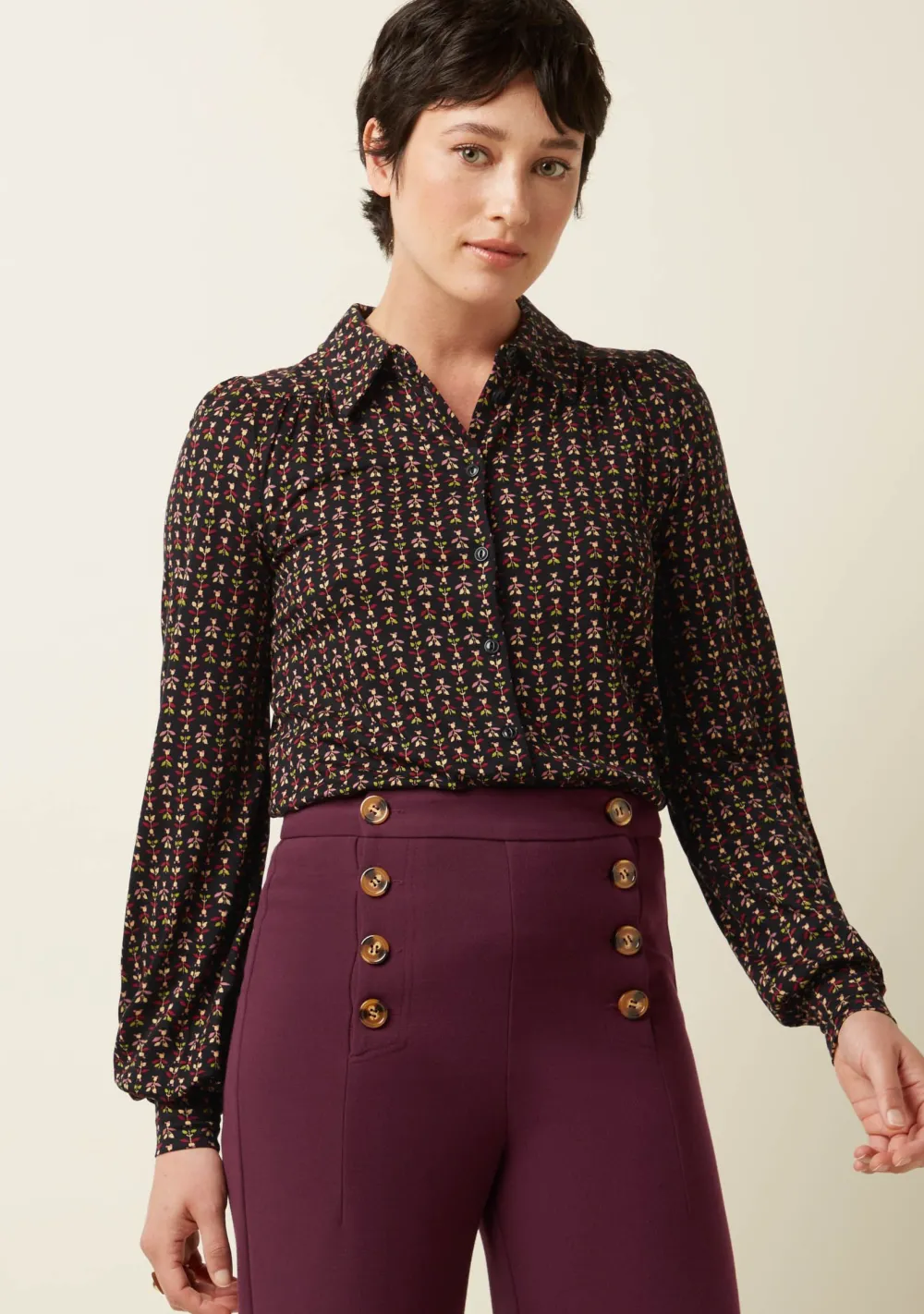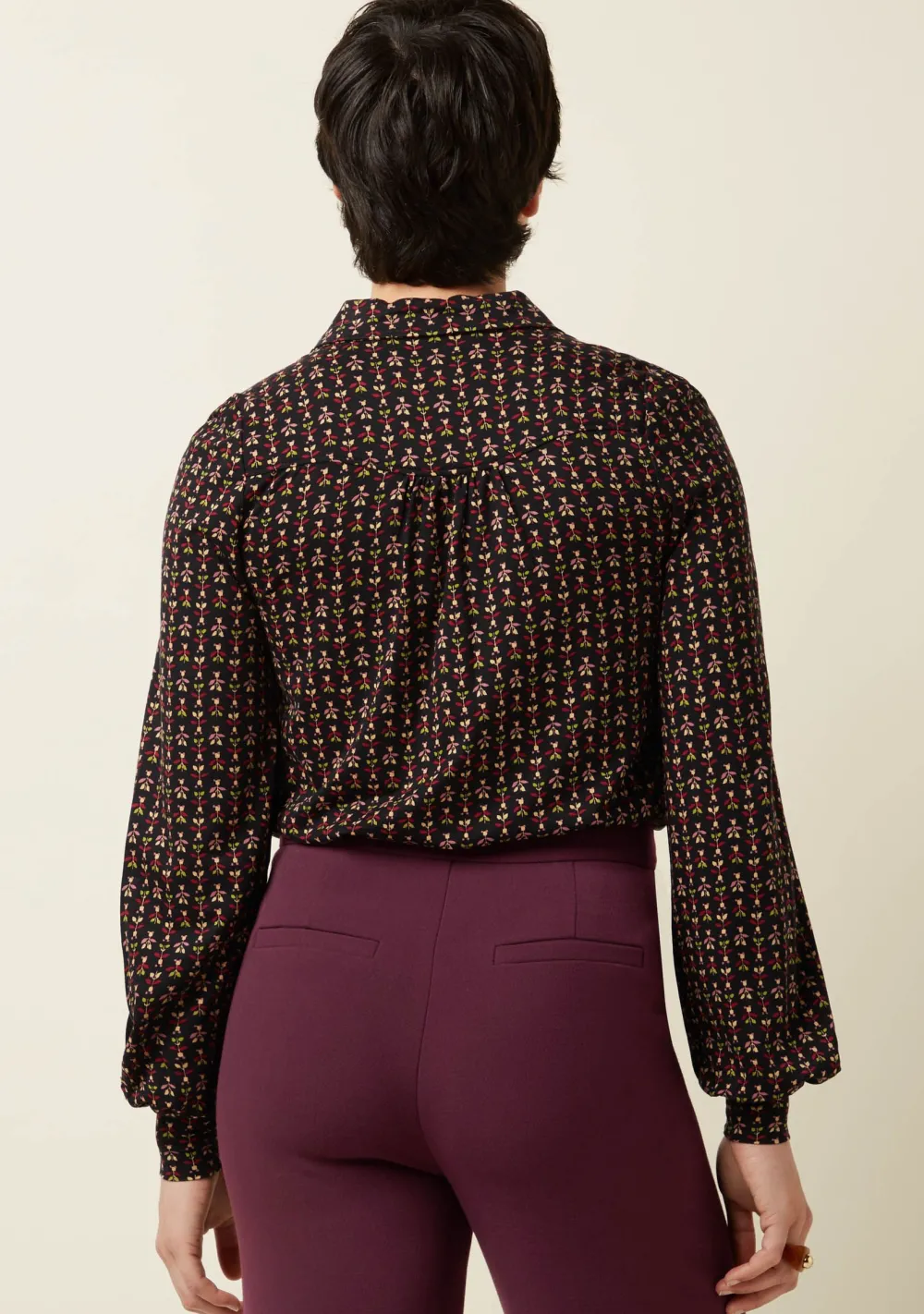 – Het model is 1.70m lang en draagt maat S