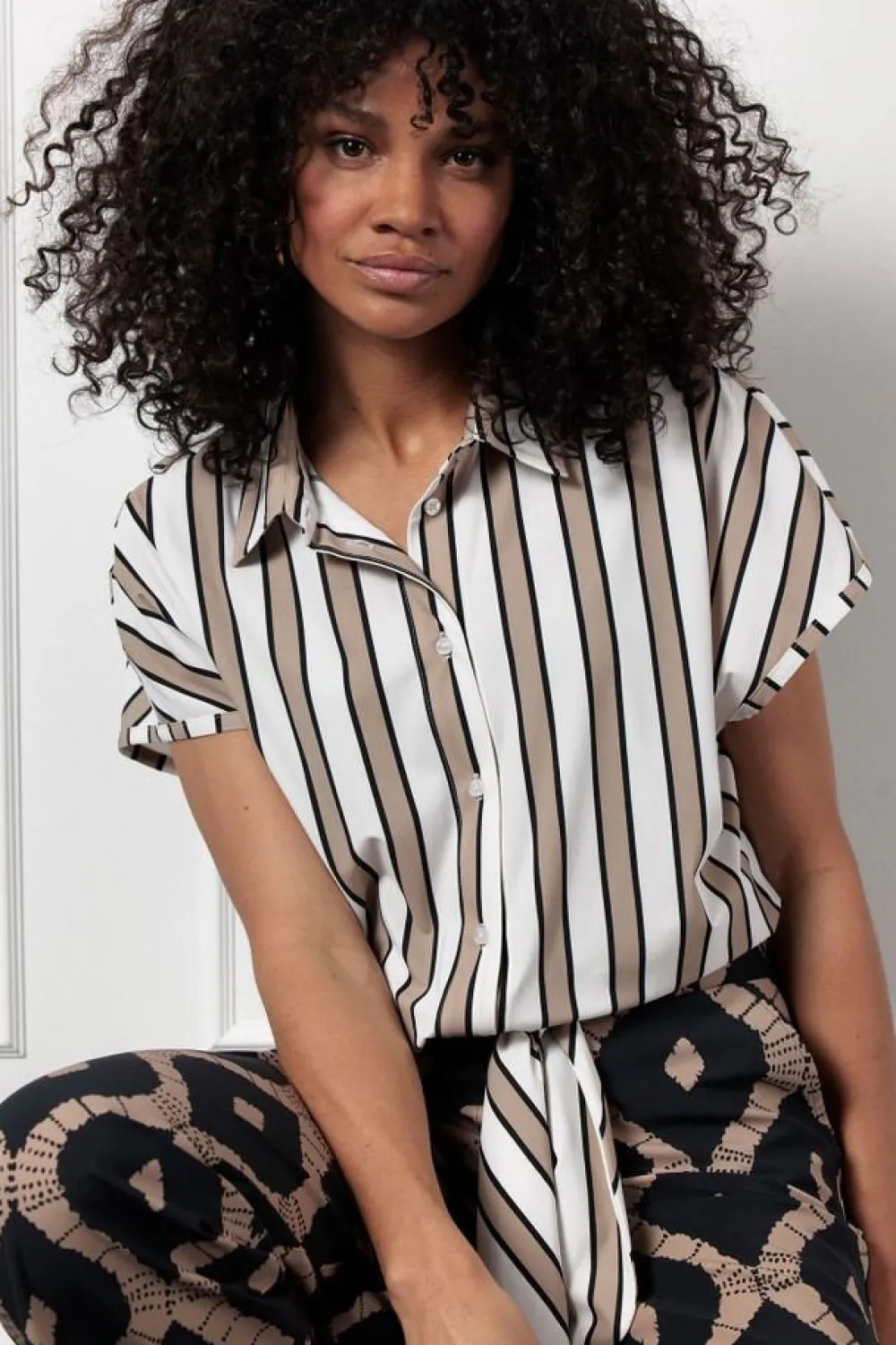 – Het model is 1.76m lang en draagt maat S
