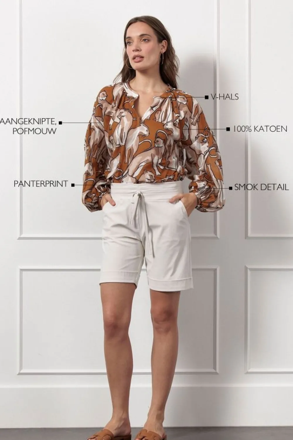 – Het model is 1.79m lang en draagt maat S