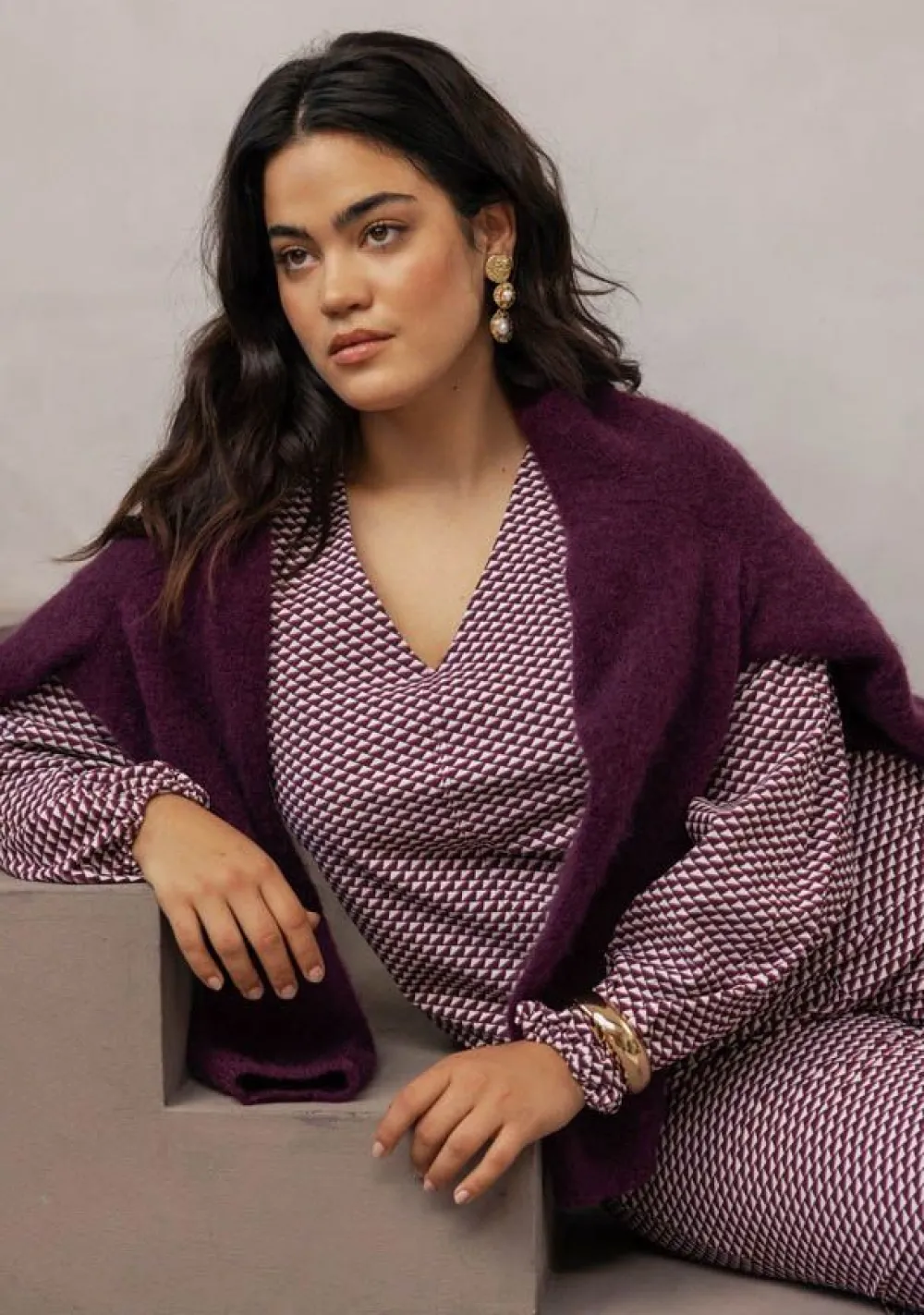 – Het model is 1.75m lang en draagt maat S