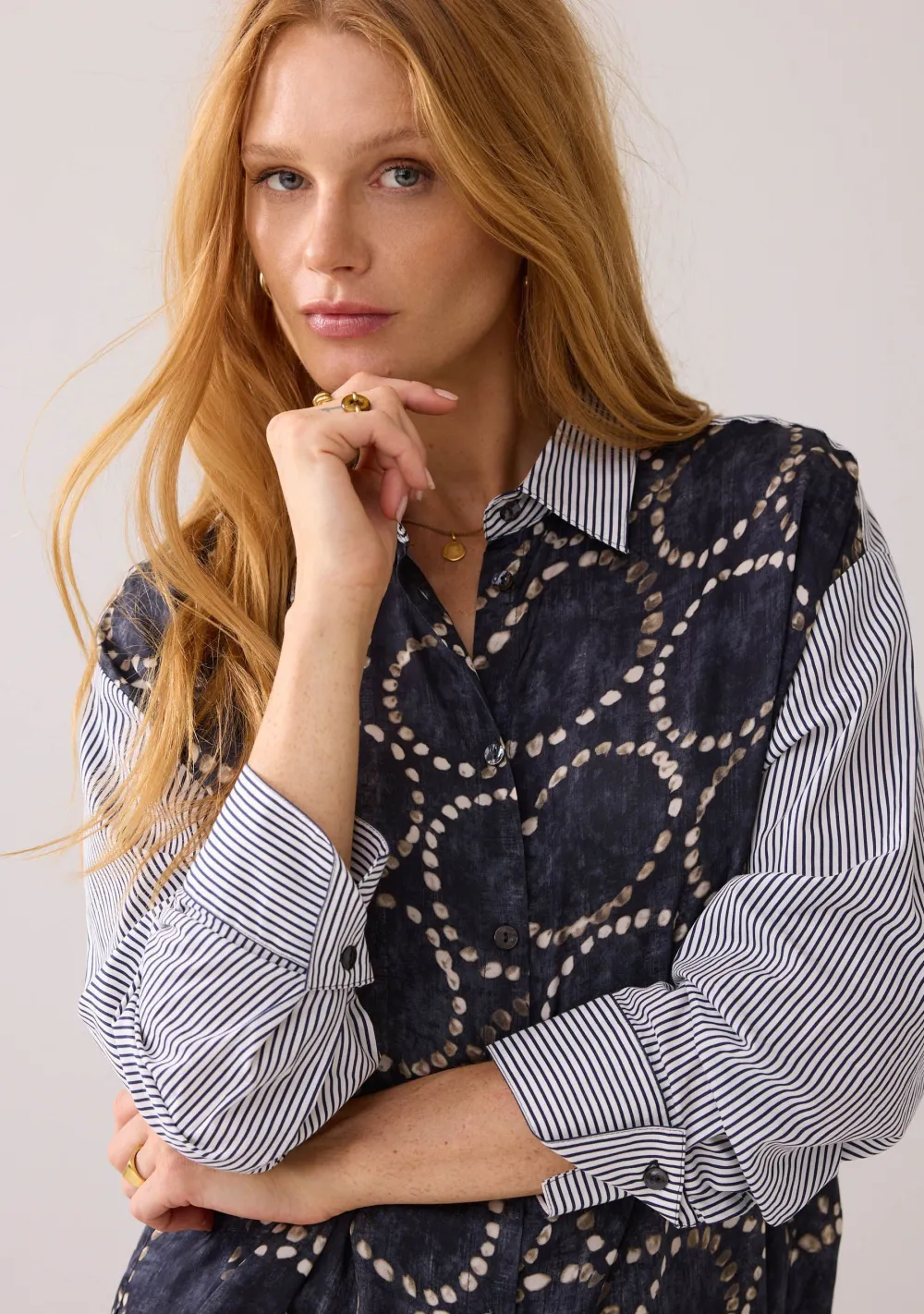 – Het model is 1.76m lang en draagt maat 36