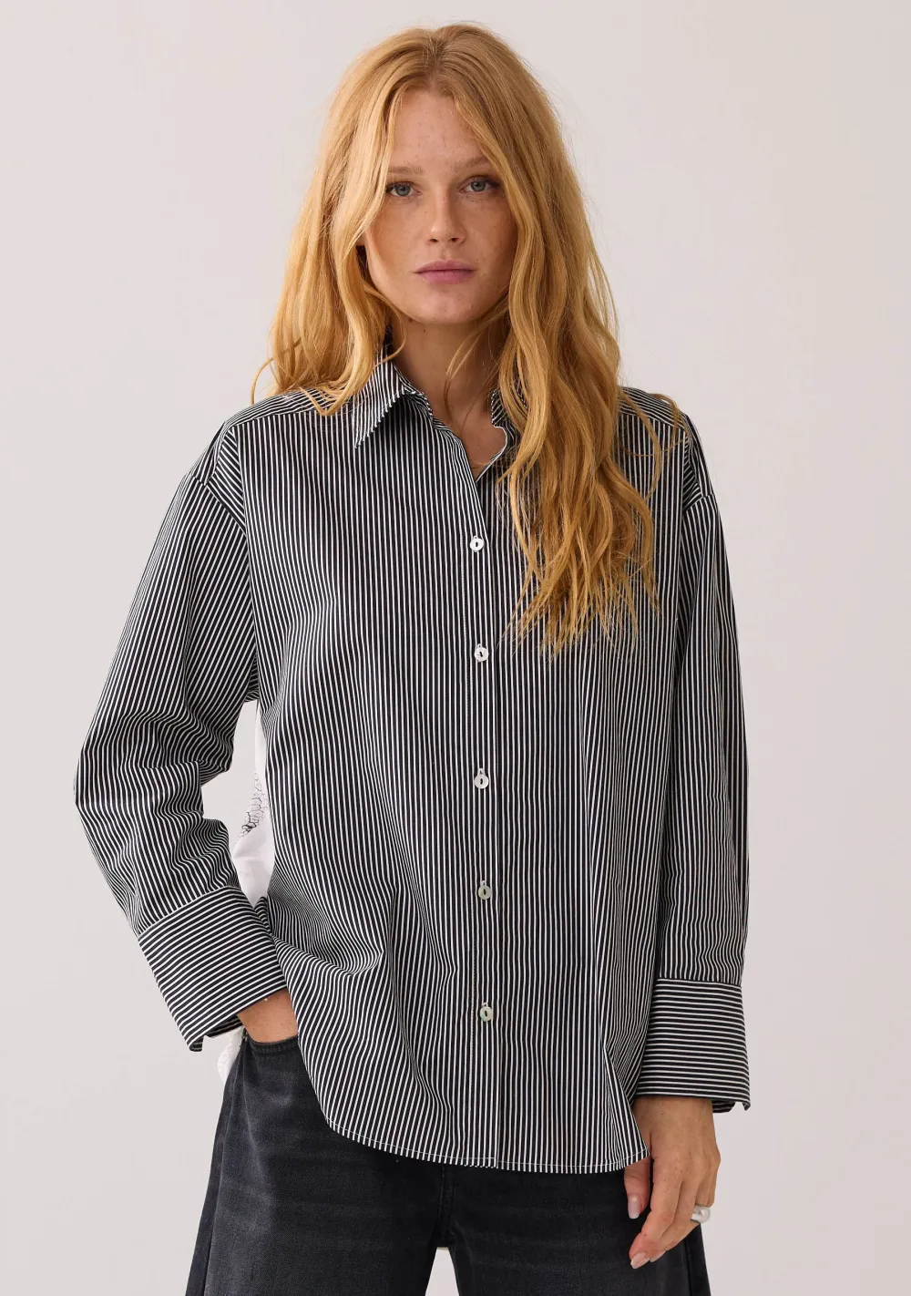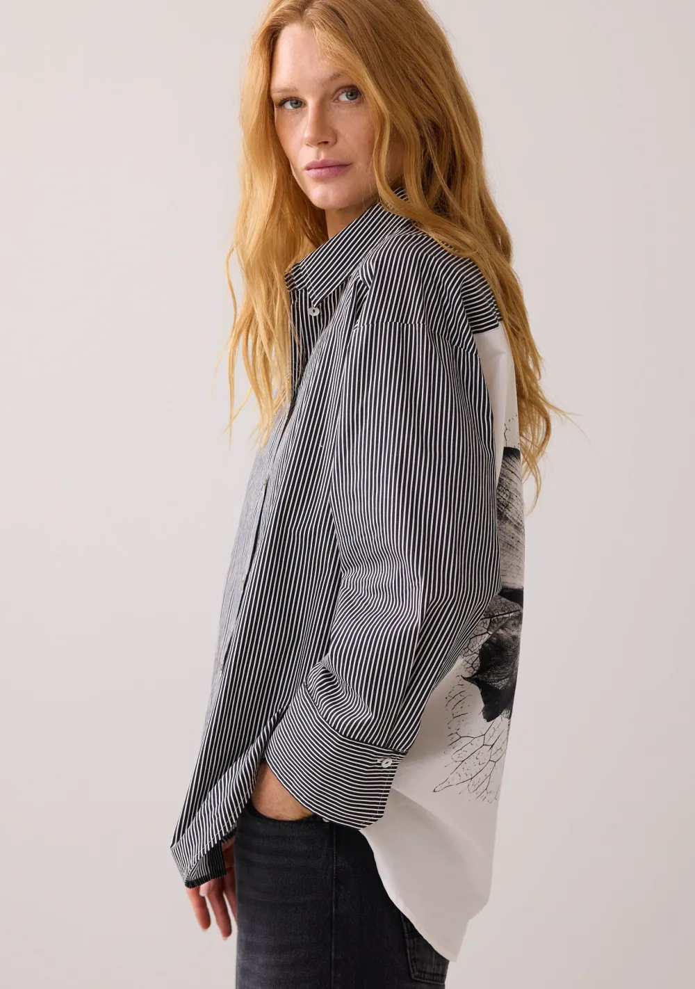 – Het model is 1.76m lang en draagt maat 36