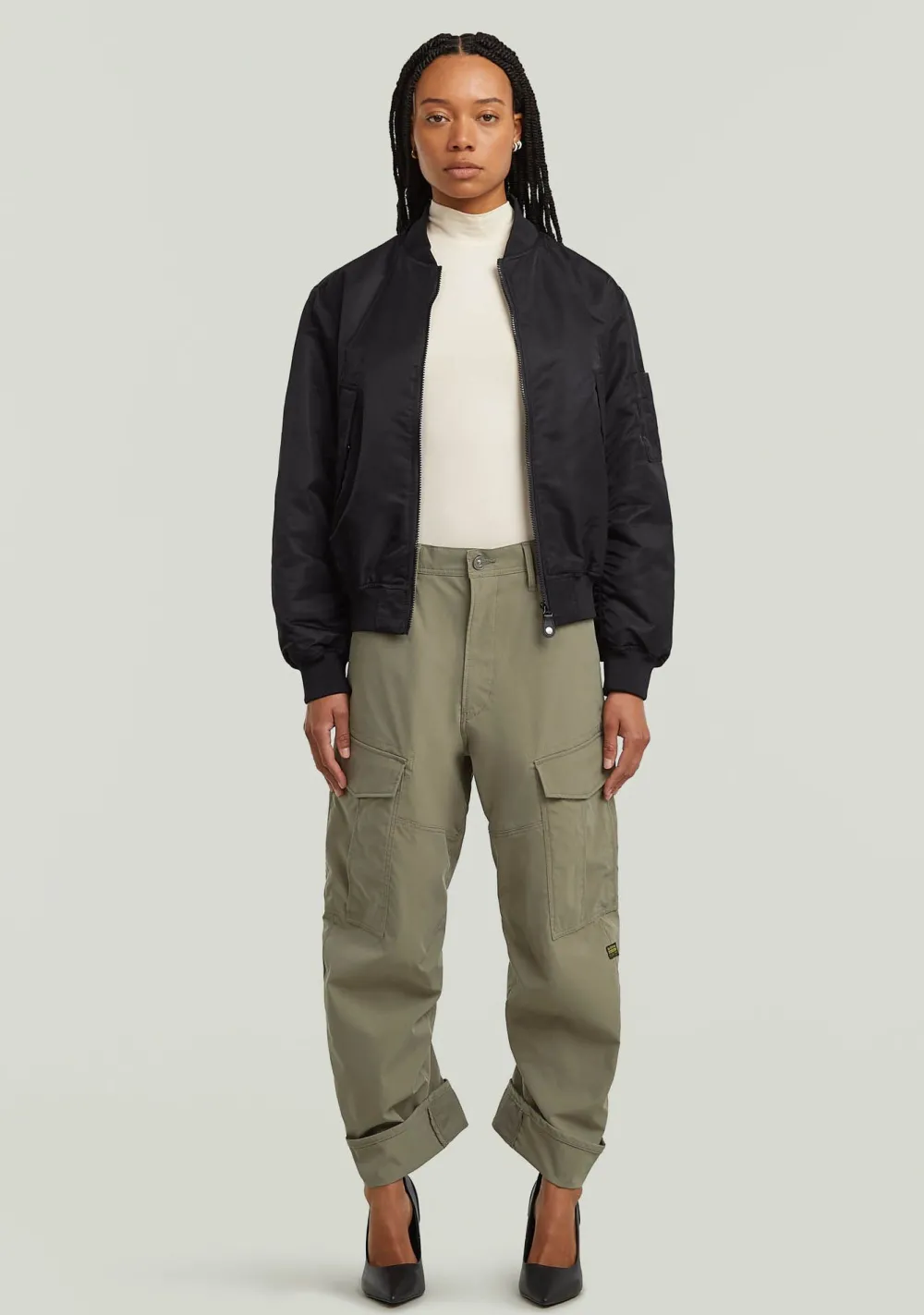 – Het model is 1.76m lang endraagt maat 25