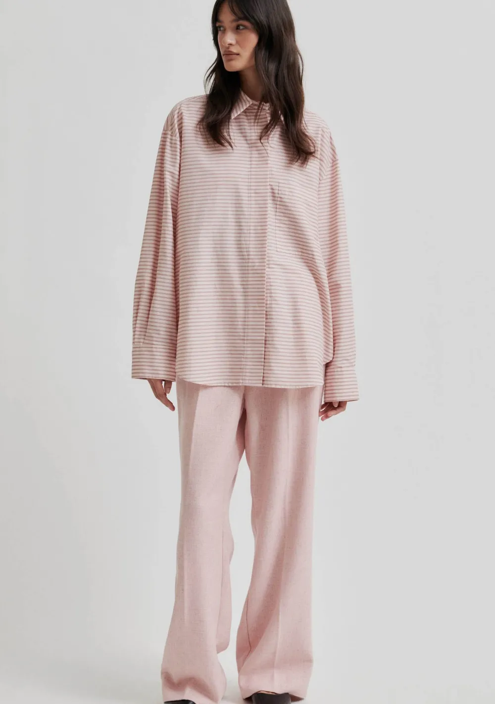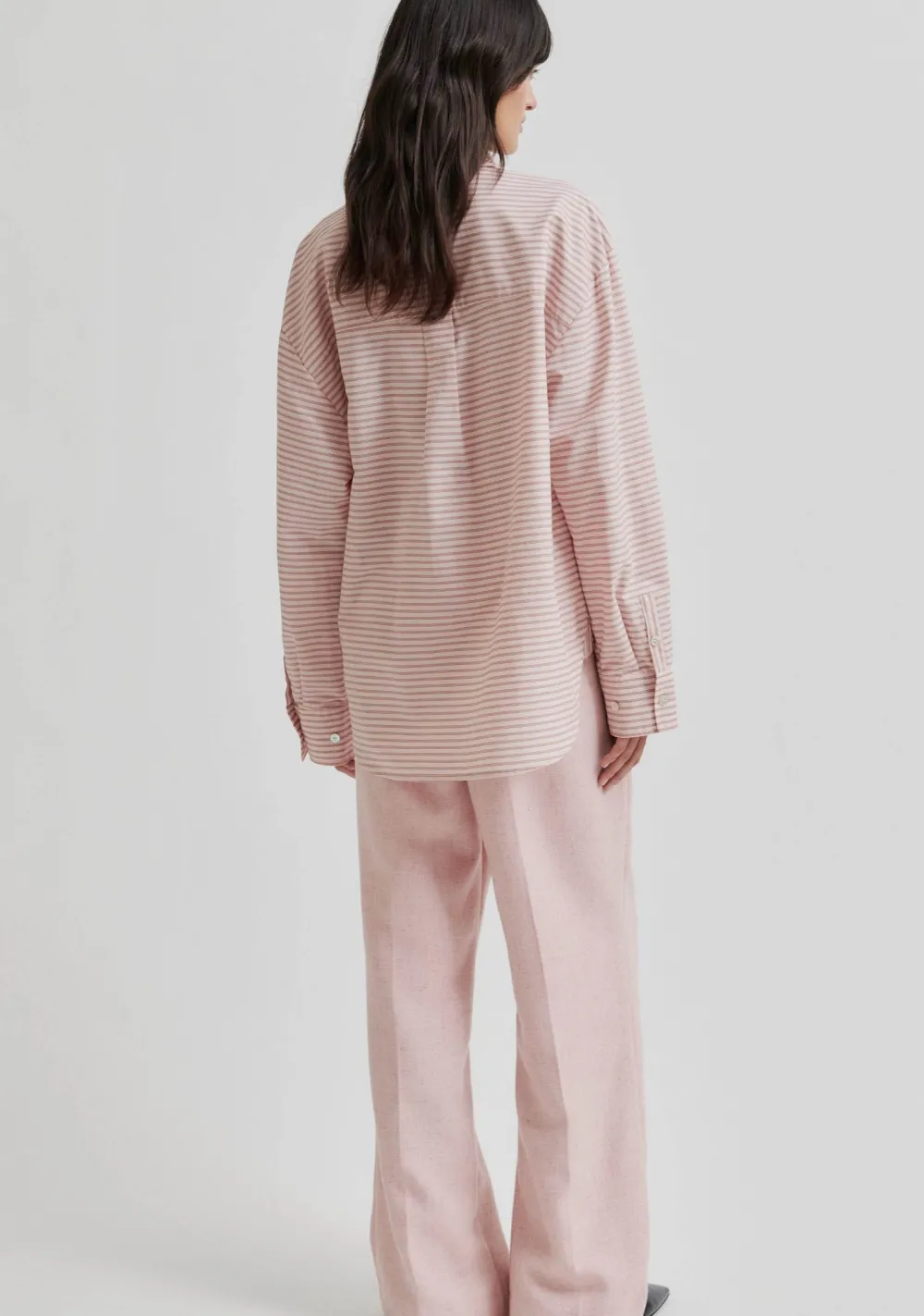 – Het model is 1.76m lang en draagt maat XS