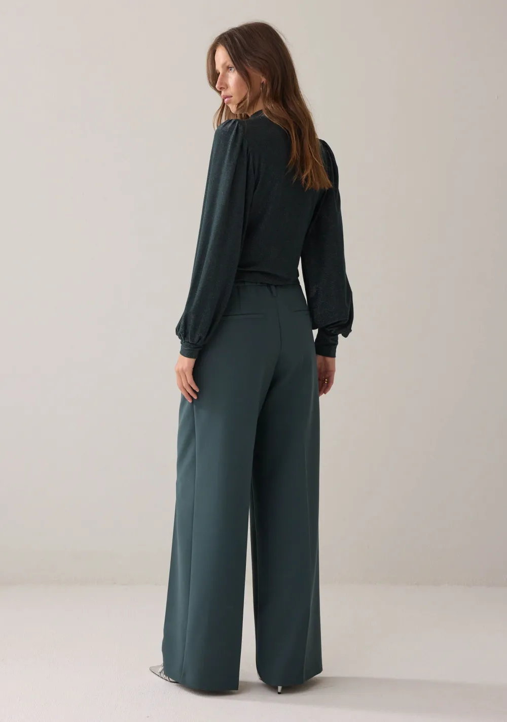 – Het model is 1.76m lang en draagt maat 36