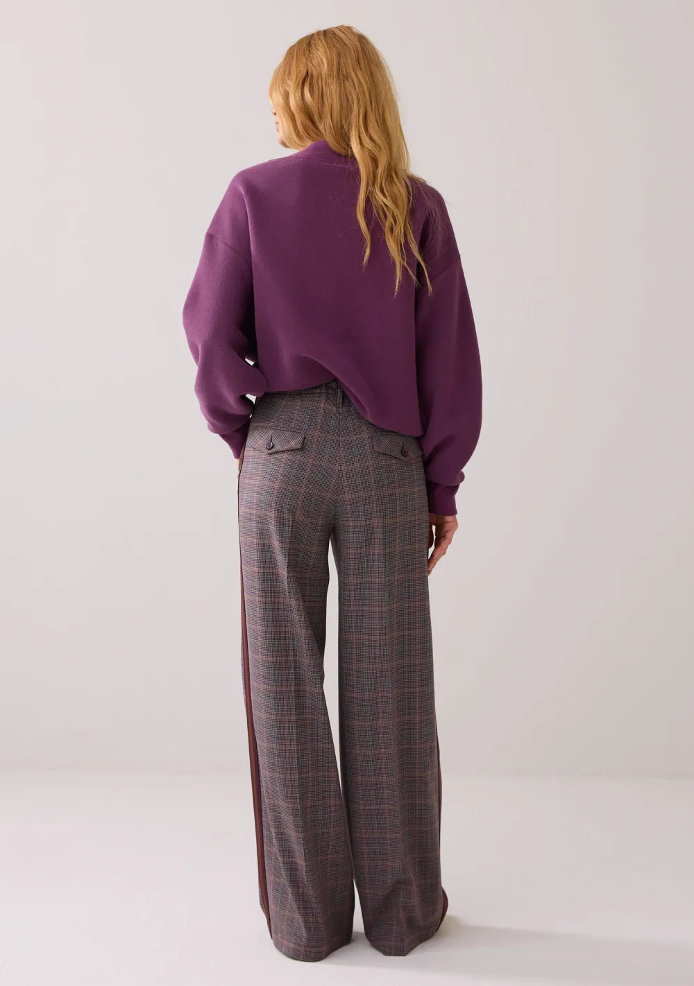 – Het model is 1.76m lang en draagt maat 36