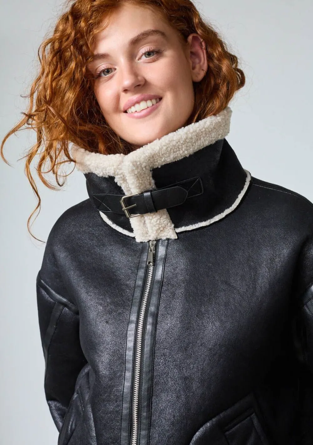 – Het model is 1.76m lang en draagt maat XS