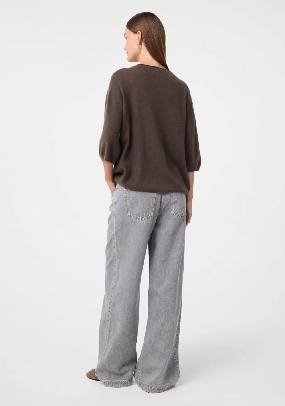 – Het model is 1.80m lang en draagt maat S