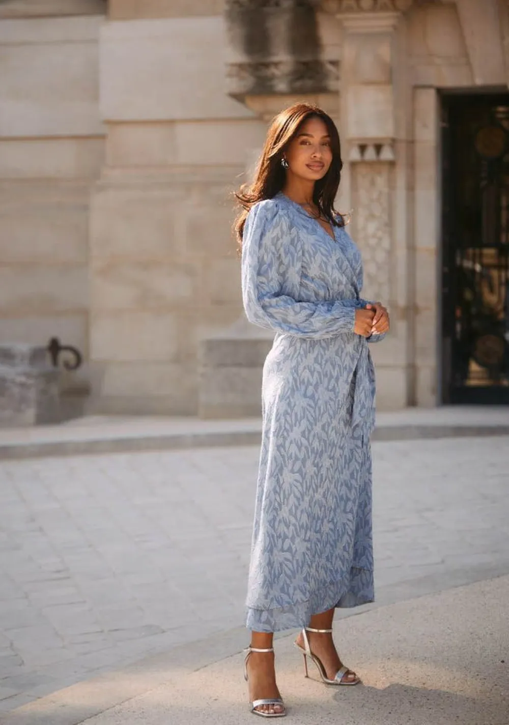 – Het model is 1.75m lang en draagt maat S