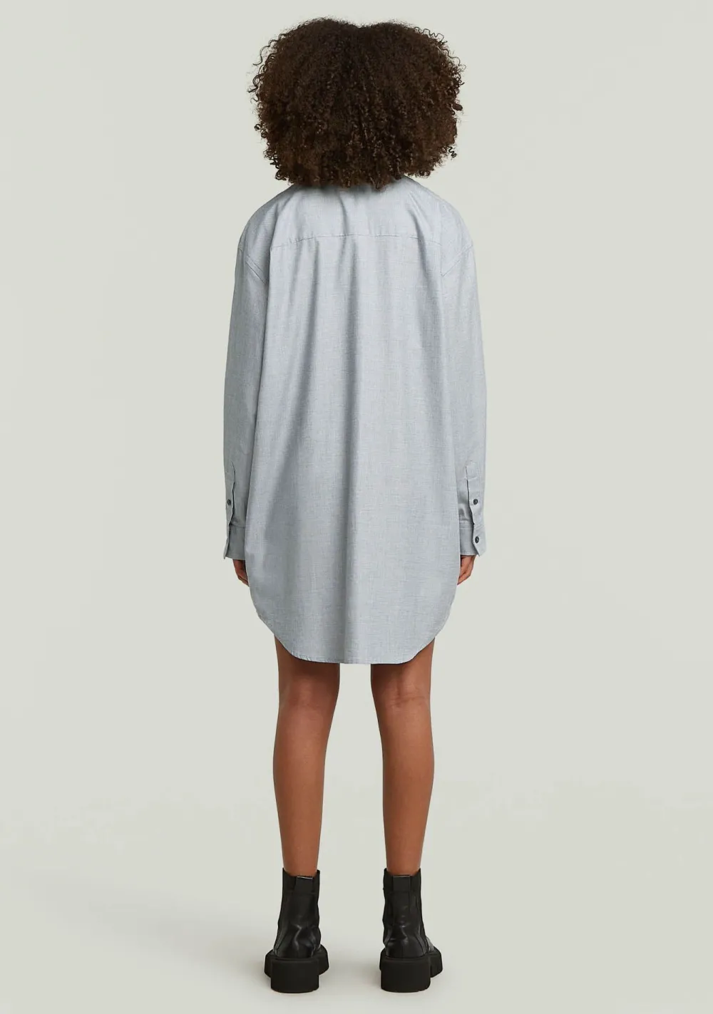 – Het model is 1.77m lang en draagt maat S