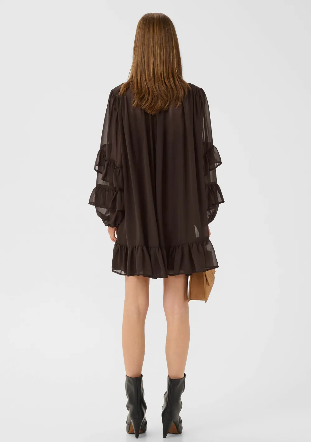 – Het model is 1.76m lang en draagt maat S
