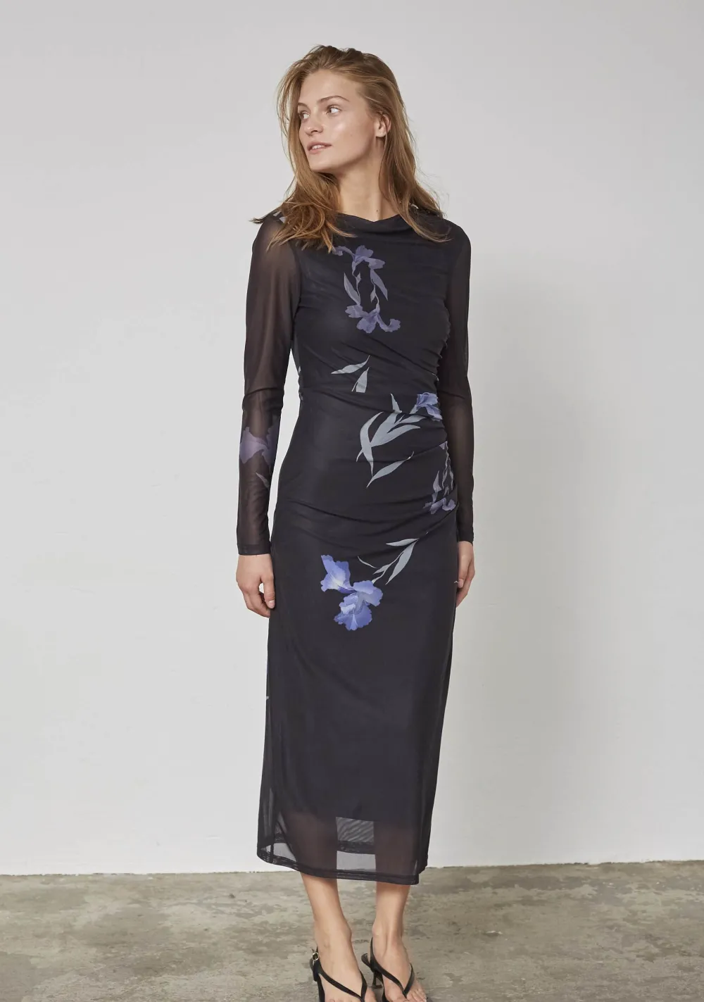 – Het model is 1.76m lang en draagt maat S