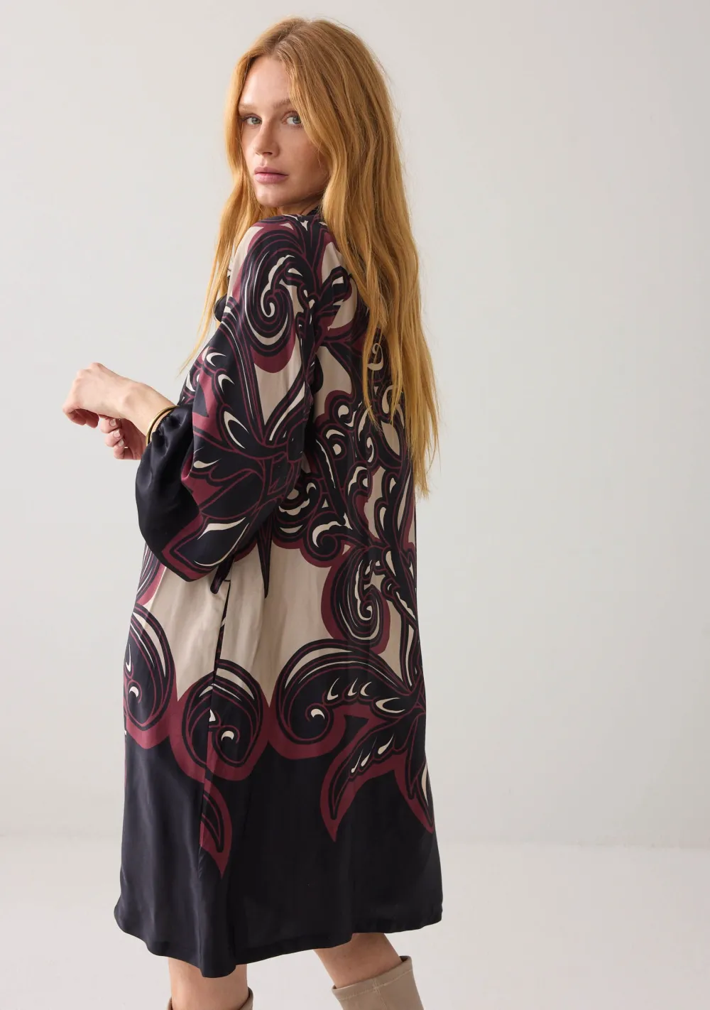 – Het model is 1.77m lang en draagt maat S