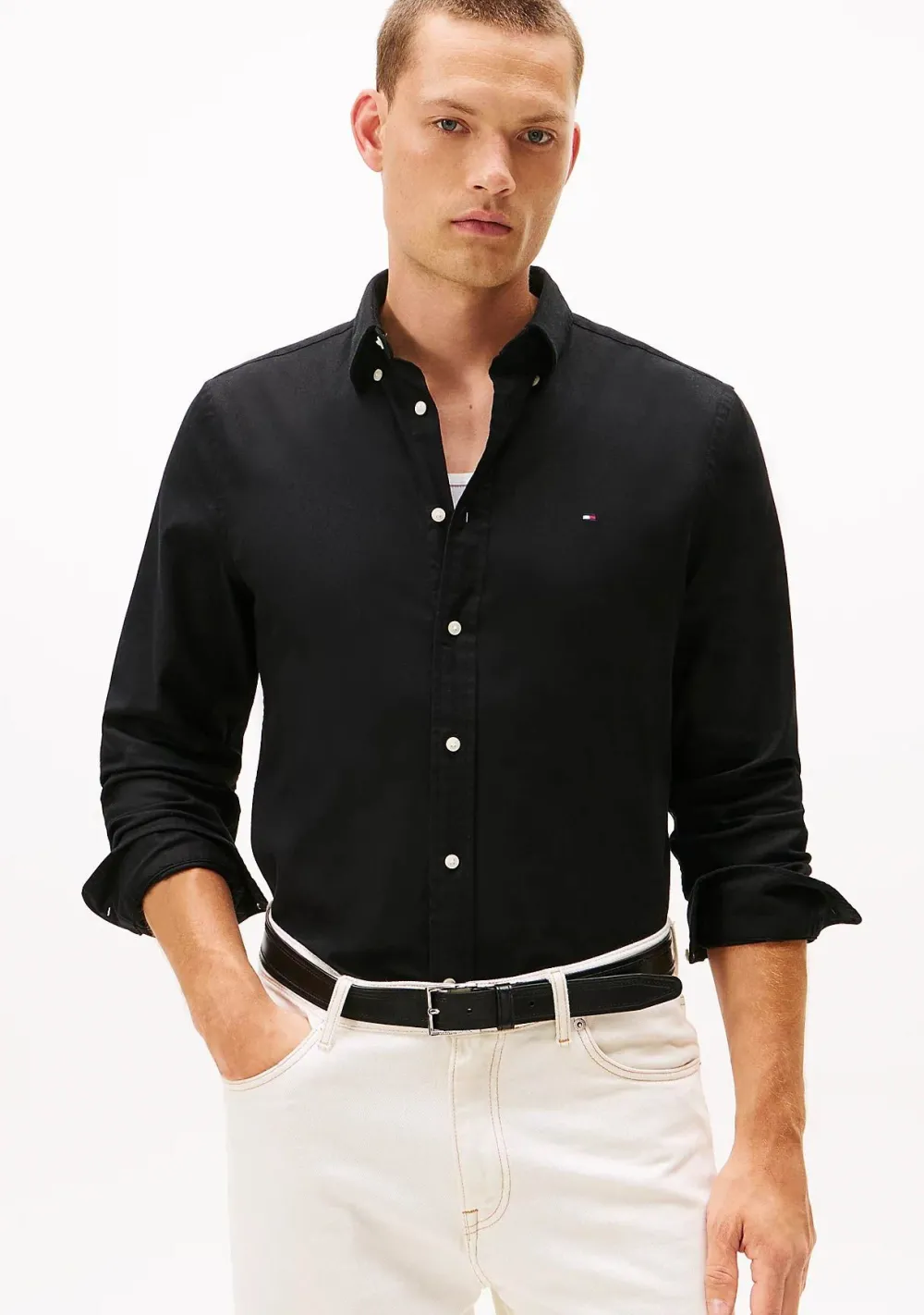 Overhemden>TOMMY HILFIGER OVERHEMD Zwart