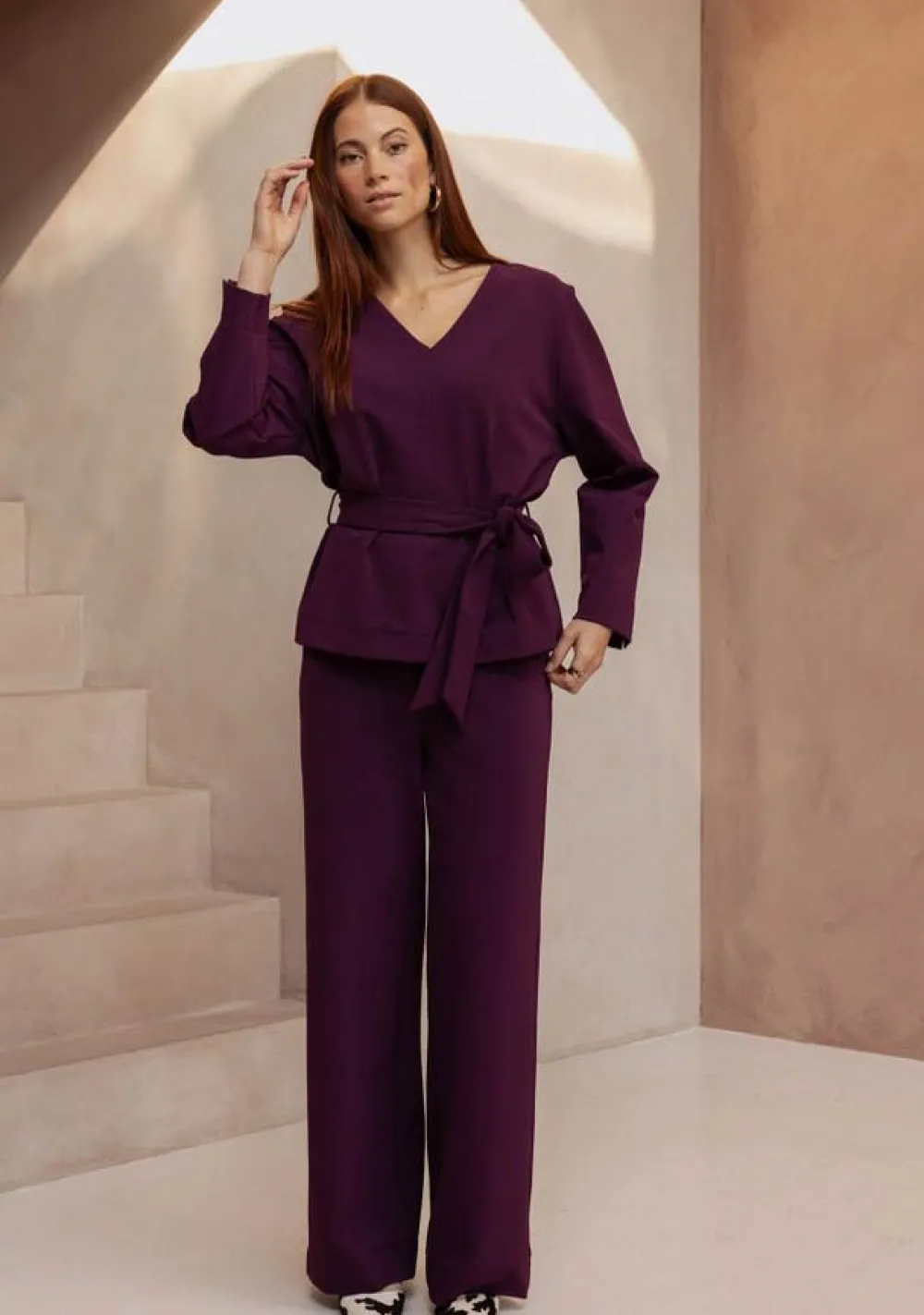 – Het model is 1.75m lang en draagt maat S
