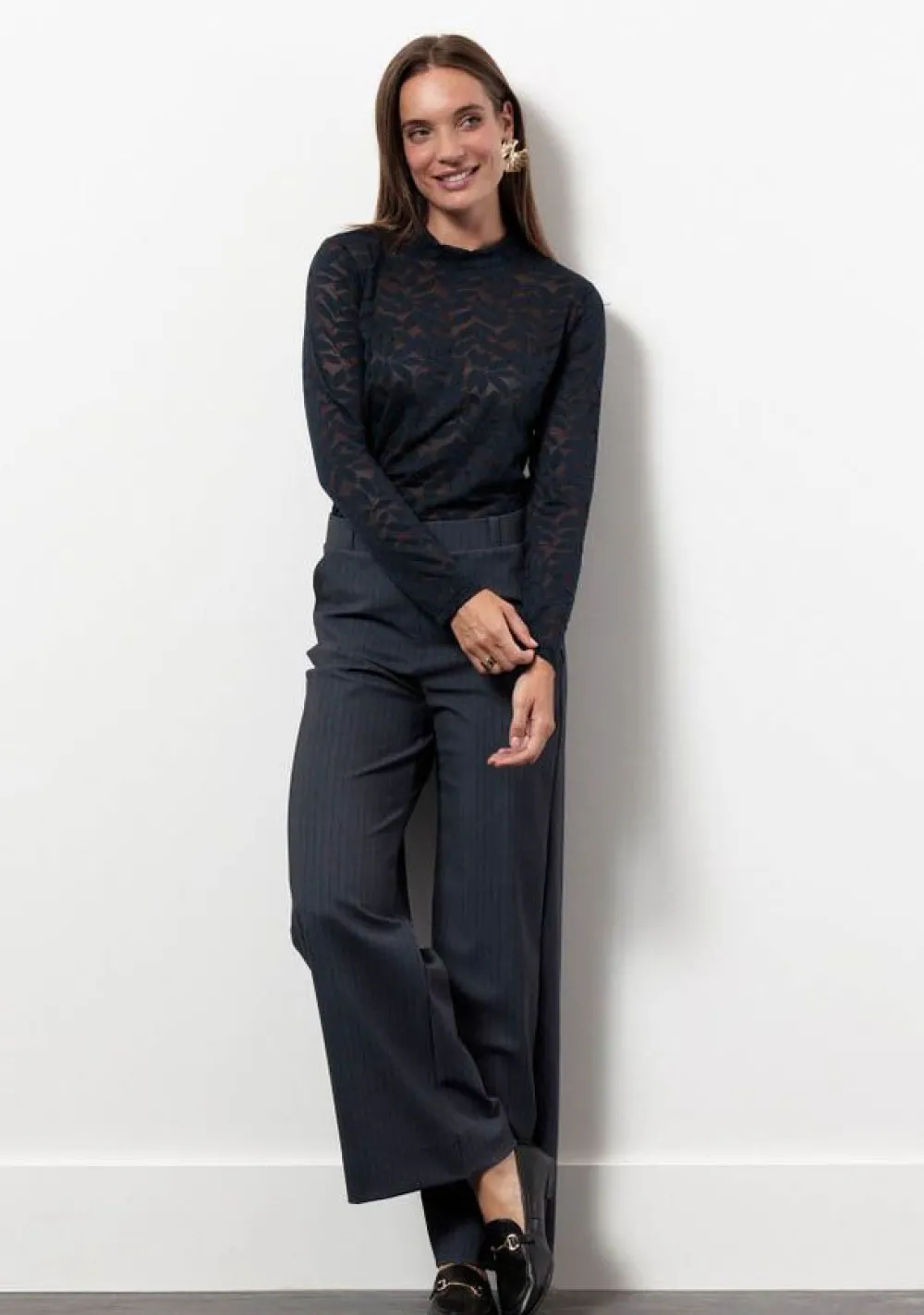 – Het model is 1.75m lang en draagt maat S