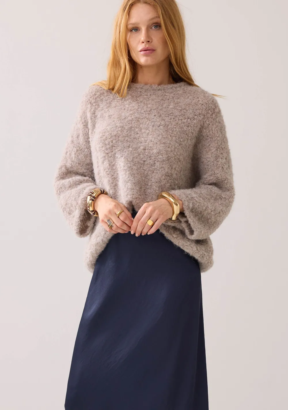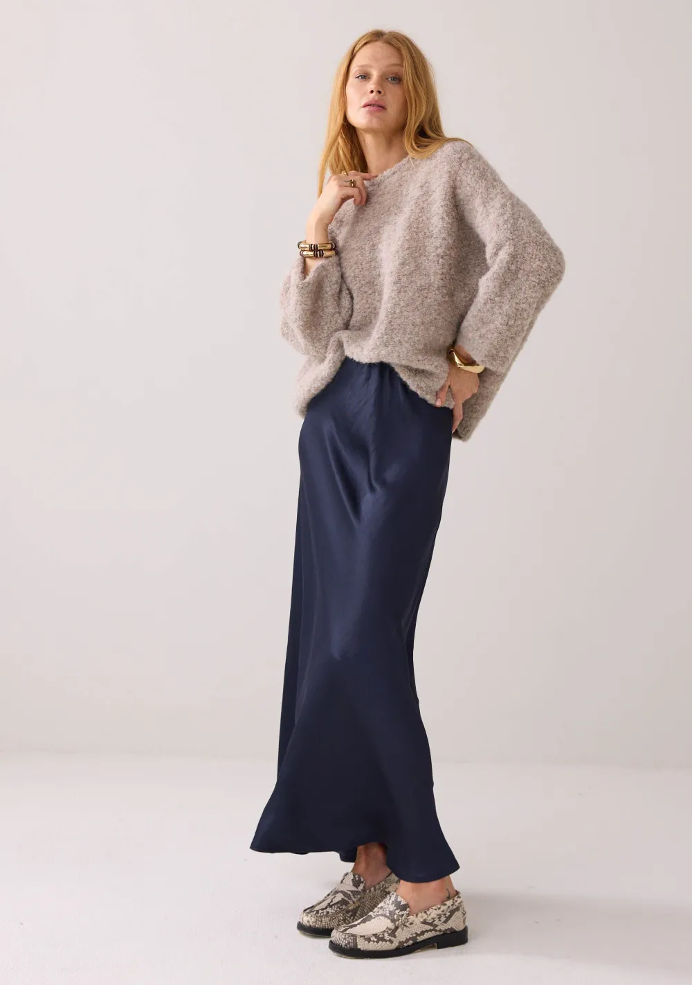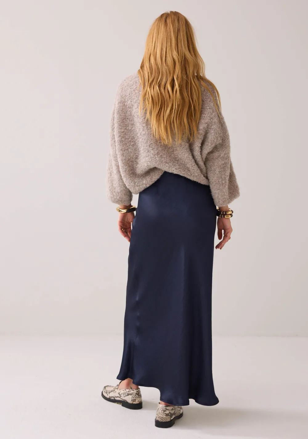 – Het model is 1.76m lang en draagt maat 36