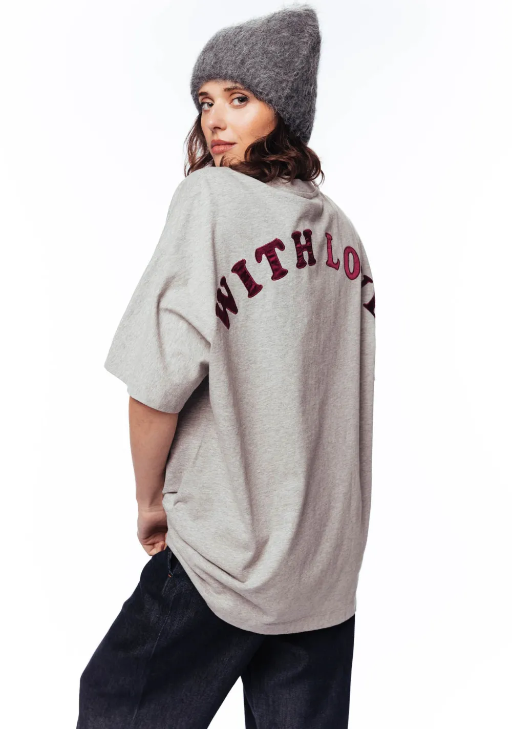 – Het model is 1.76m lang en draagt maat 36