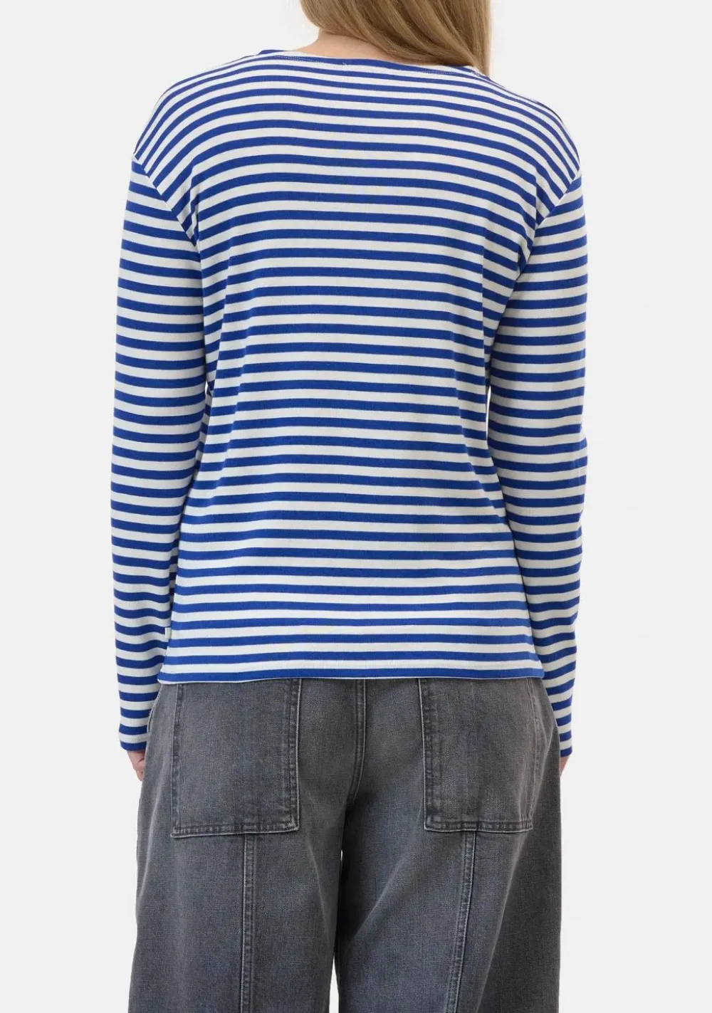 – Het model is 1.76m lang en draagt maat S
