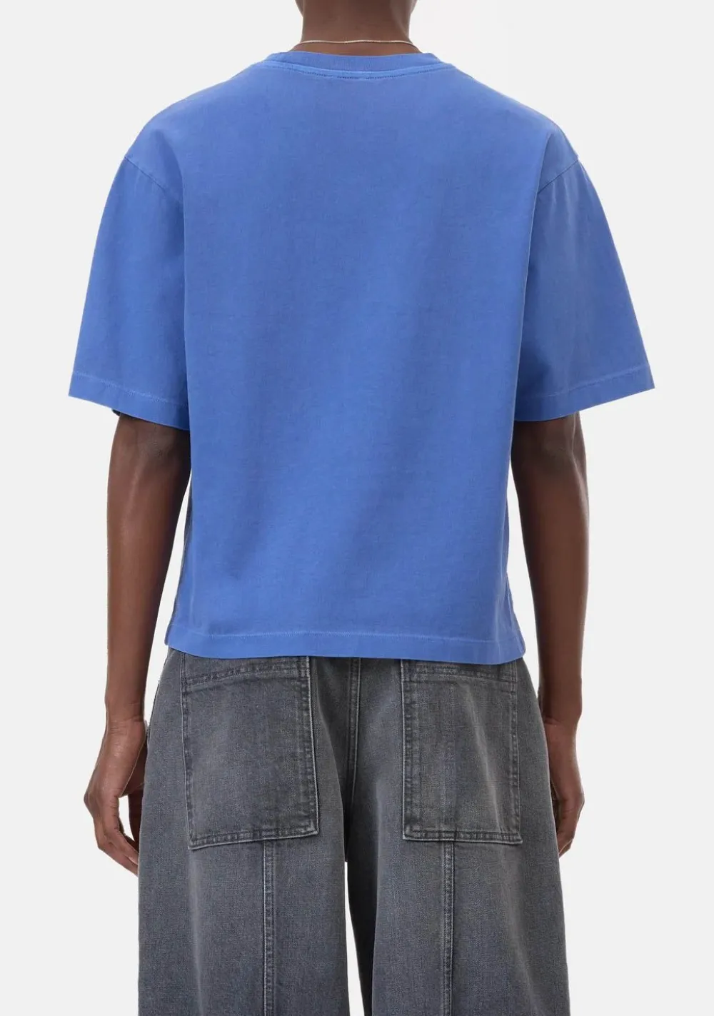 – Het model is 1.76m lang en draagt maat S
