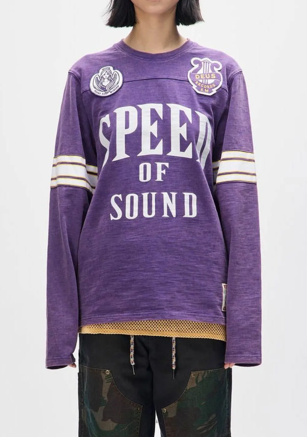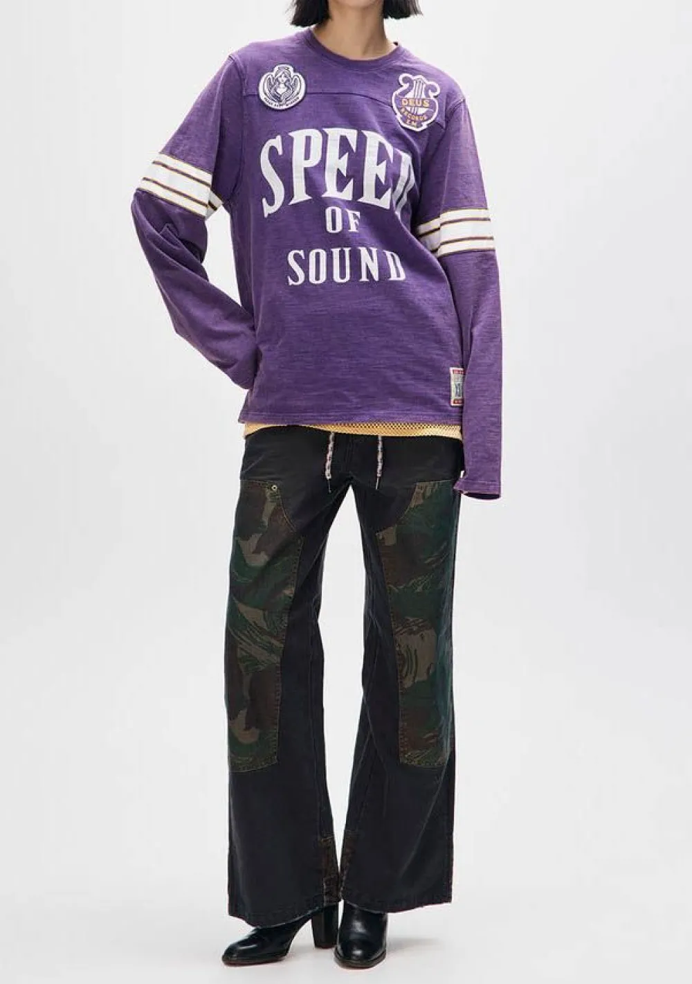 – Het model is 1.76m lang en draagt maat S