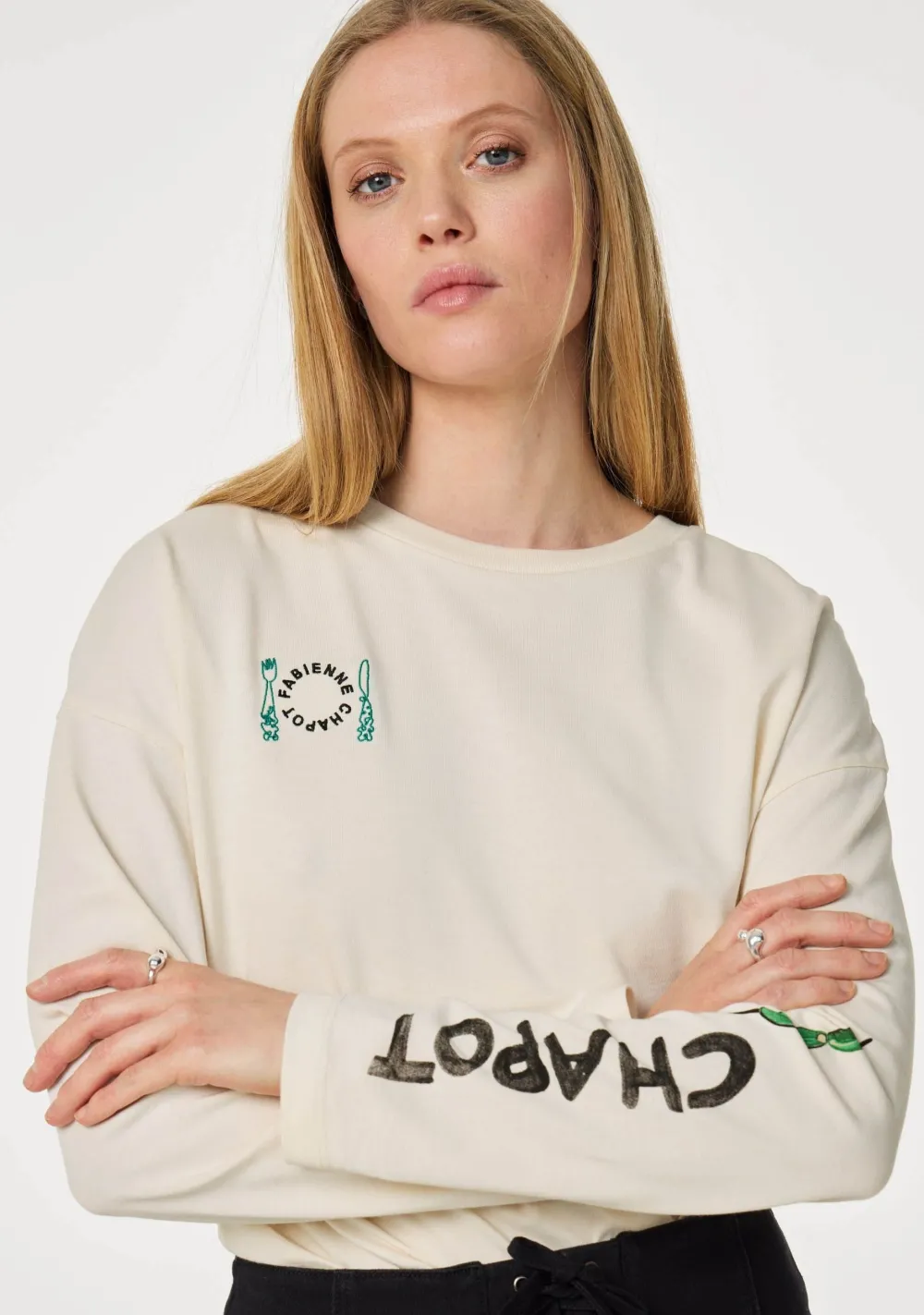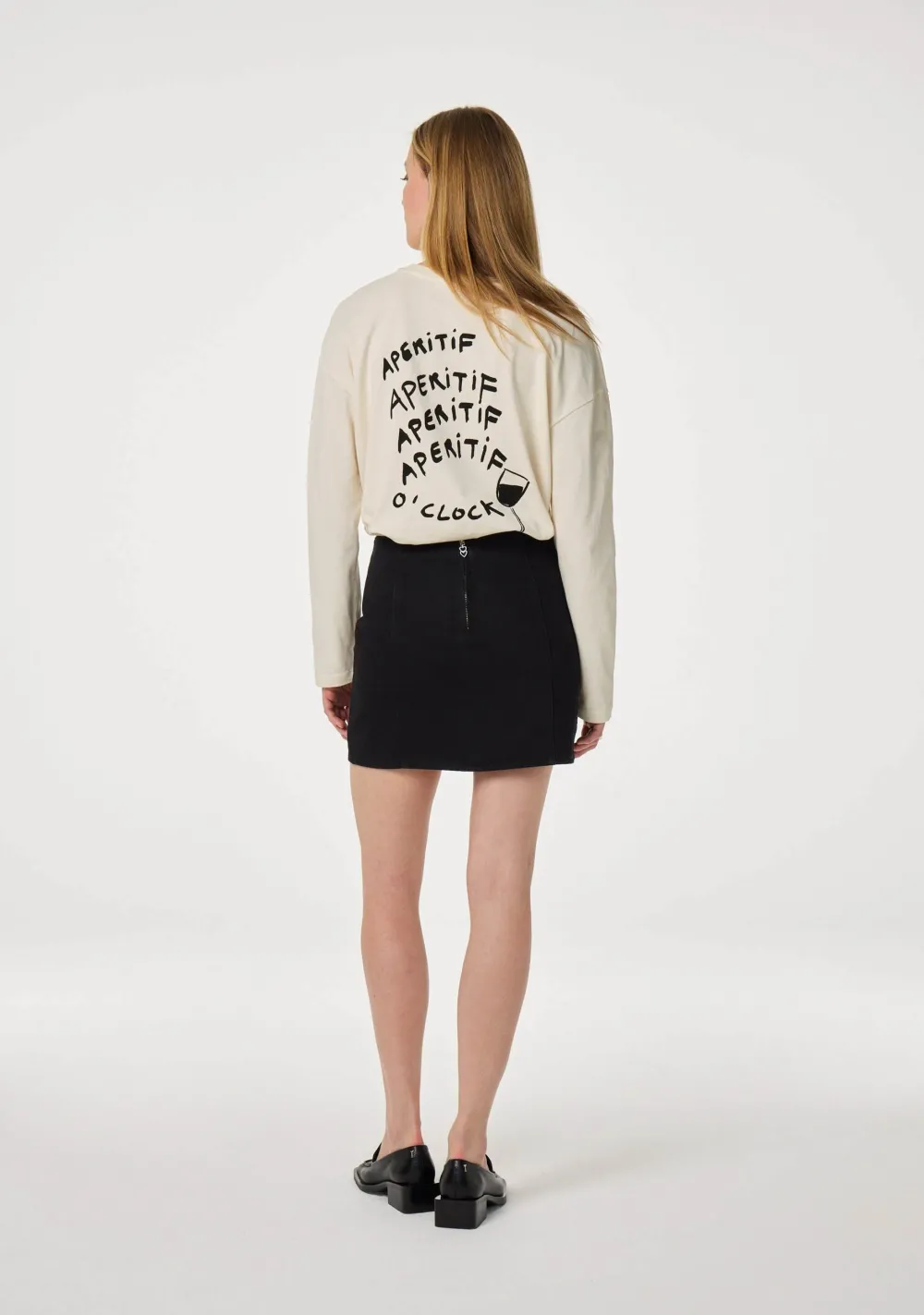 – Het model is 1.78m lang en draagt maat S