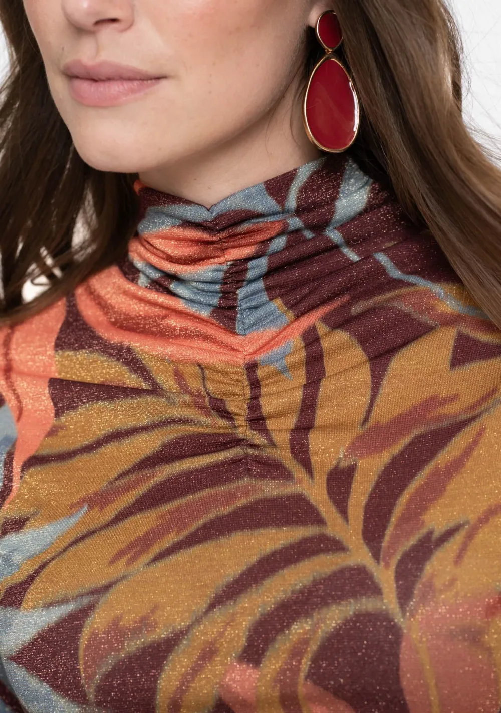 – Het model is 1.76m lang en draagt maat S